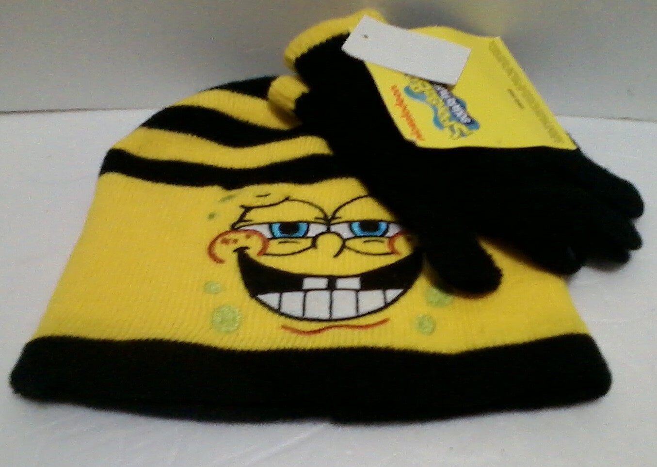 Nickelodeon Sponge Bob Square Pants Youth Hat Beanie Cap Knit Gloves 2013