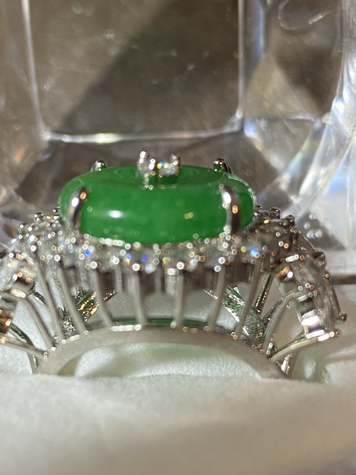 как выглядит New Sterling Silver Ladys Green Brilliant CZ Halo Ring Size Adjustable фото