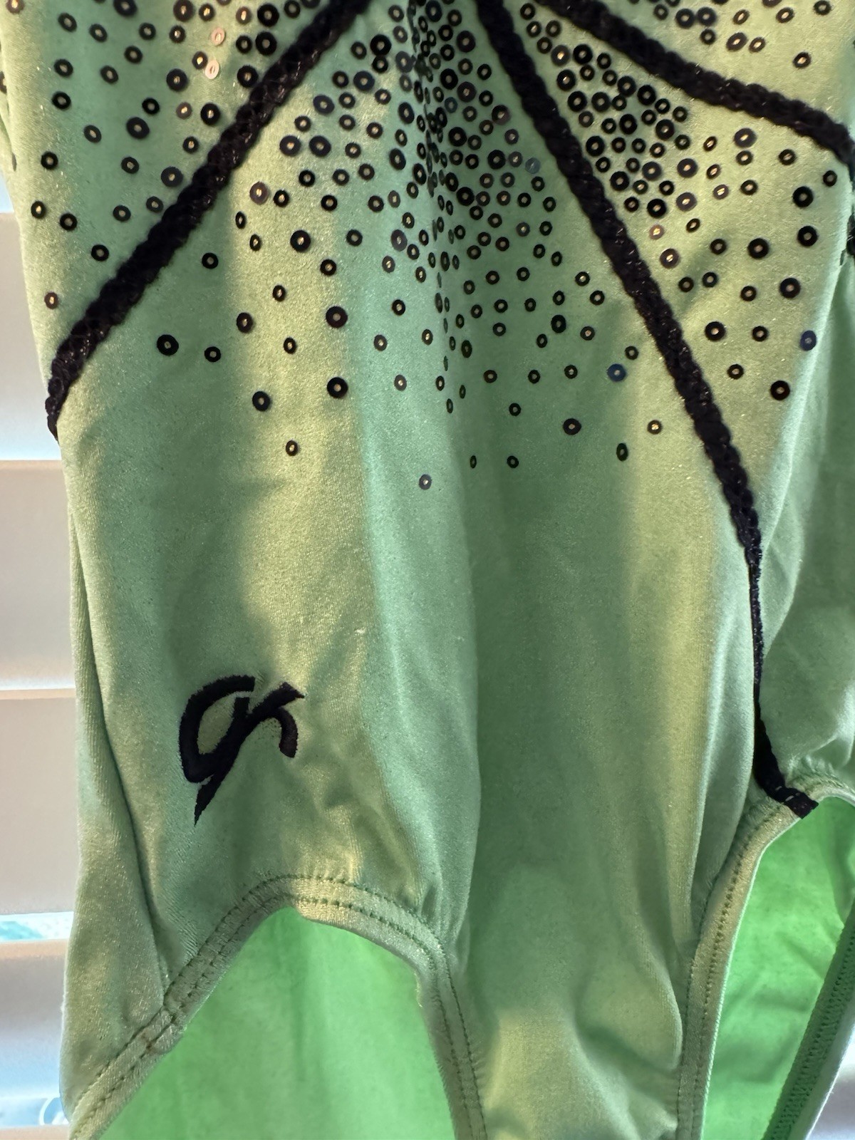 как выглядит GK Elite GYMNASTICS dance LEOTARD Child Medium sparkly BLACK GREEN фото