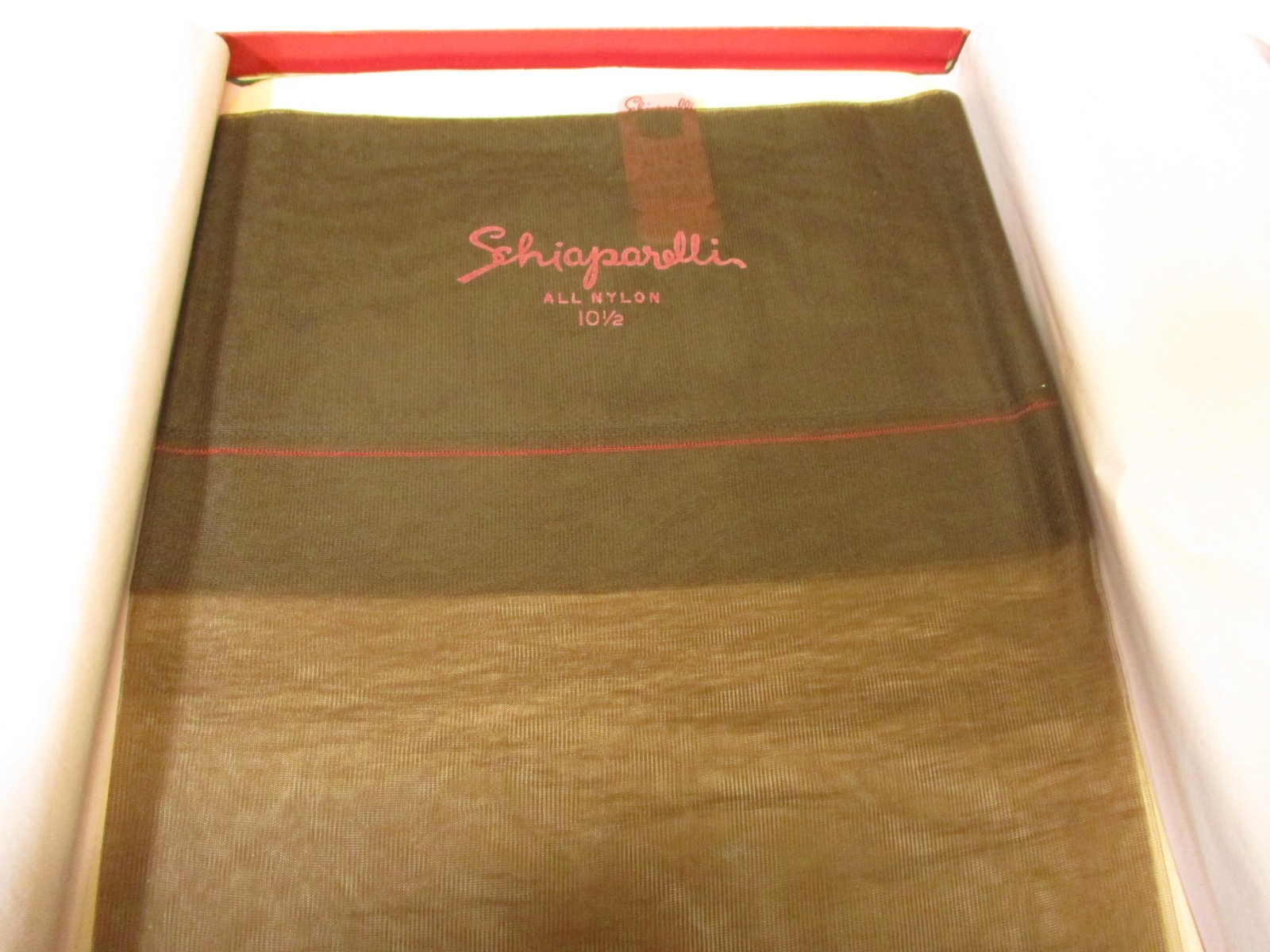 1 PR VINTAGE SCHIAPARELLI RT SHEER SHINY FLAT KNIT NYLON STOCKINGS 10 1/2 BROWN