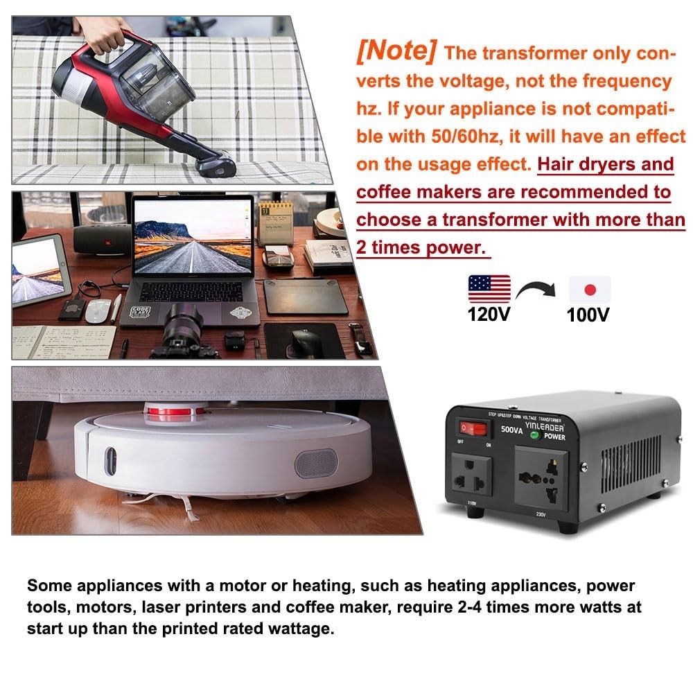 500W Step Down 120V to 100V Voltage Converter Japanese Transformer 120v to 1...