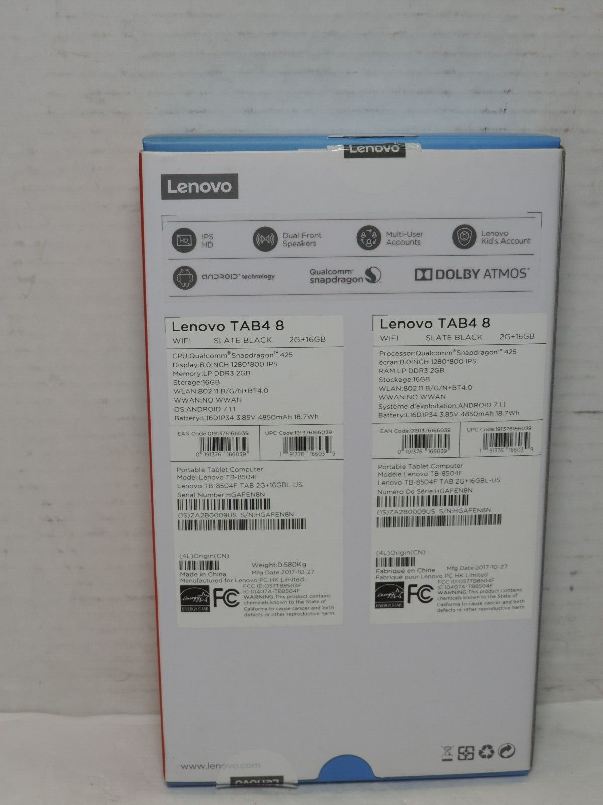 как выглядит LENOVO TAB 4 16GB WIFI TB-8504F 8" Tablet фото