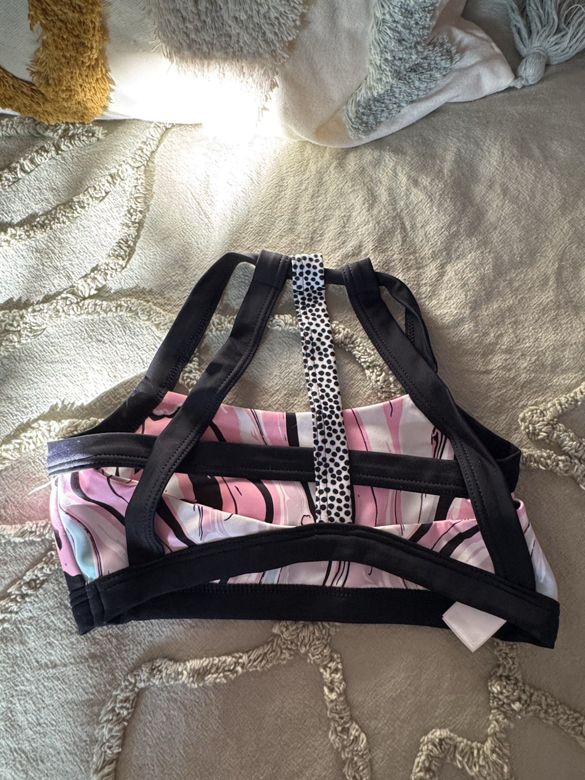SYLVIA P crop top Size 8 GYMNASTICS DANCE under leotard FUN BACK pink swirls