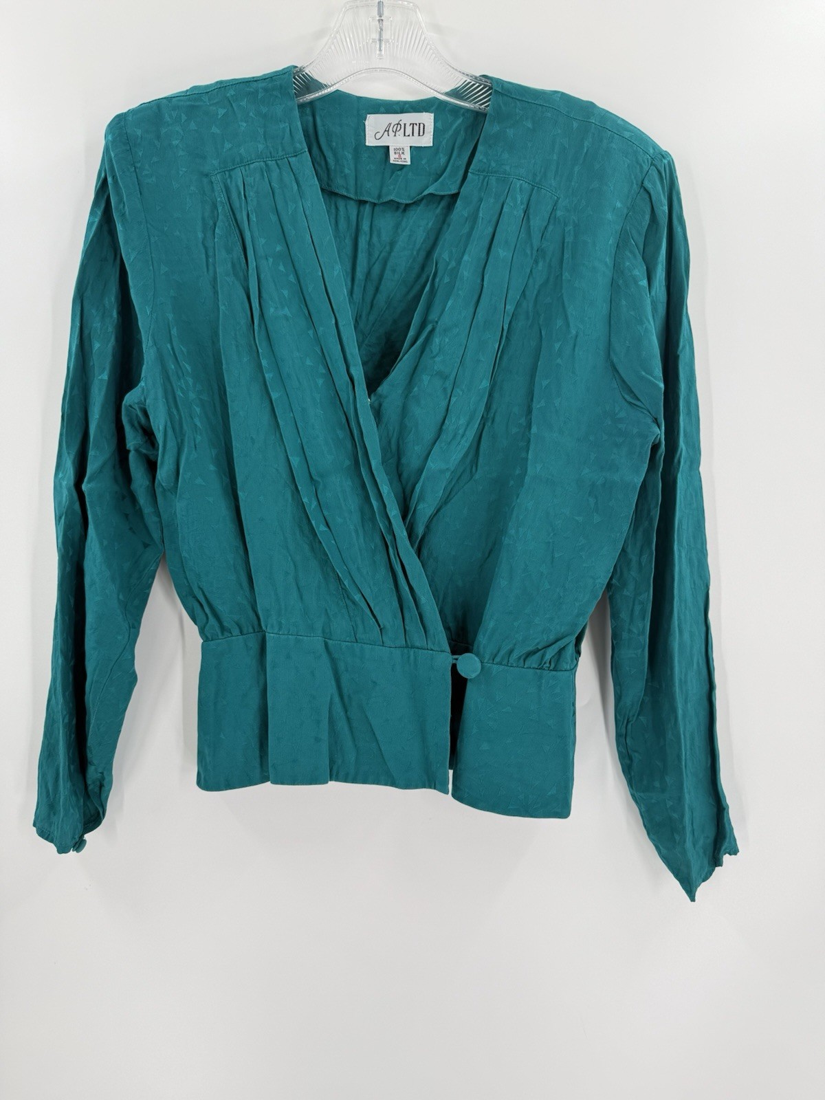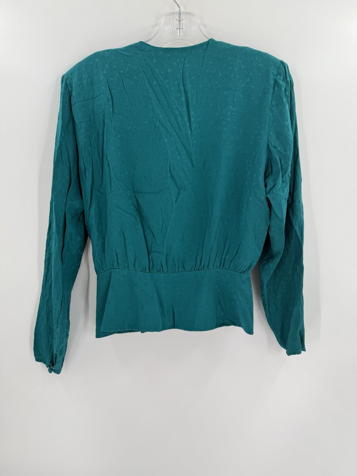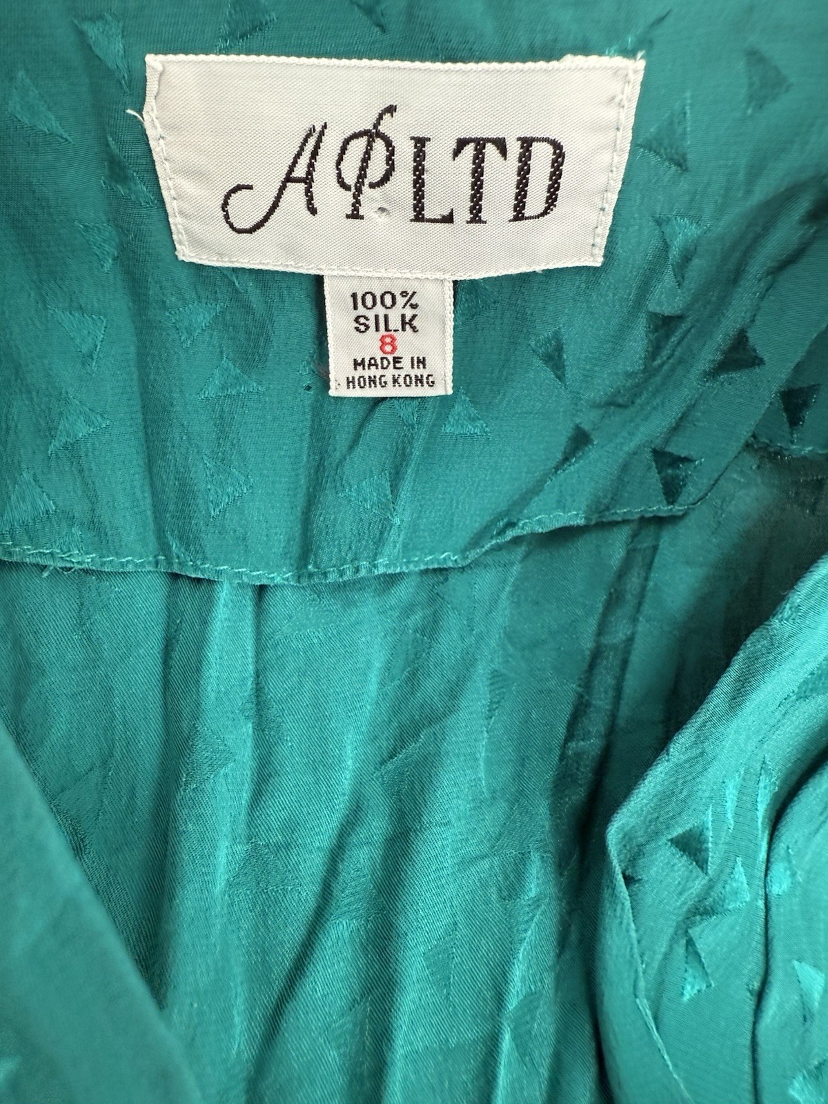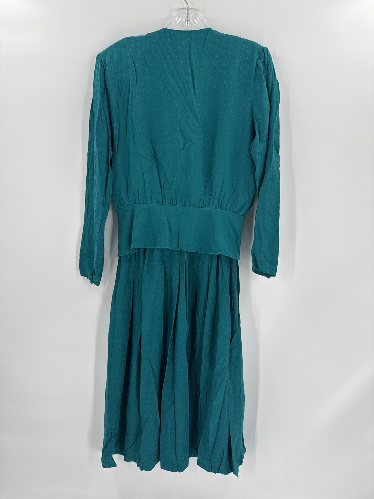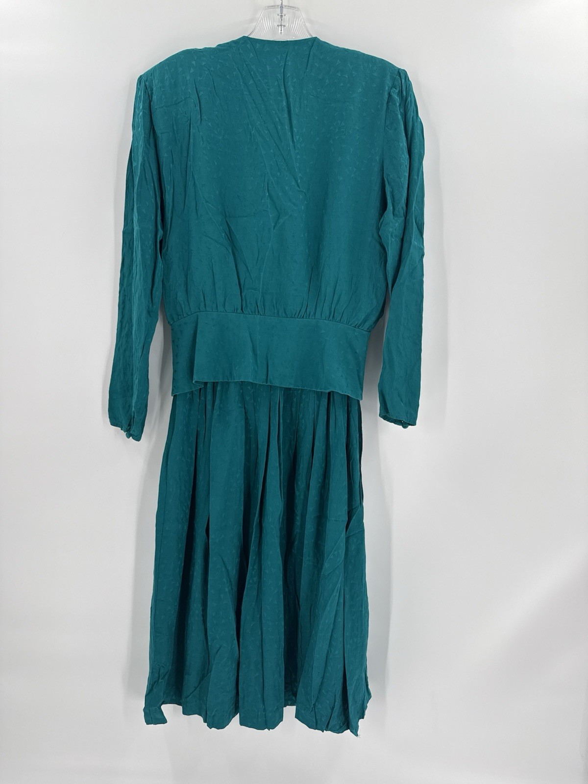 как выглядит VINTAGE Green 100 Silk Geometric Blouse Skirt Set Y2K Cottagecore 90 s Size 8 фото