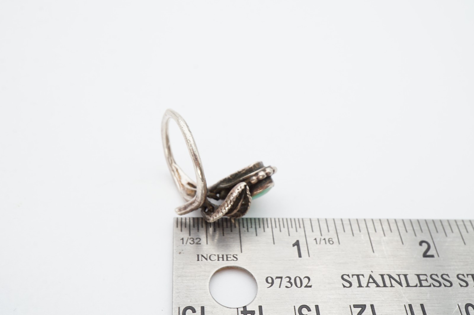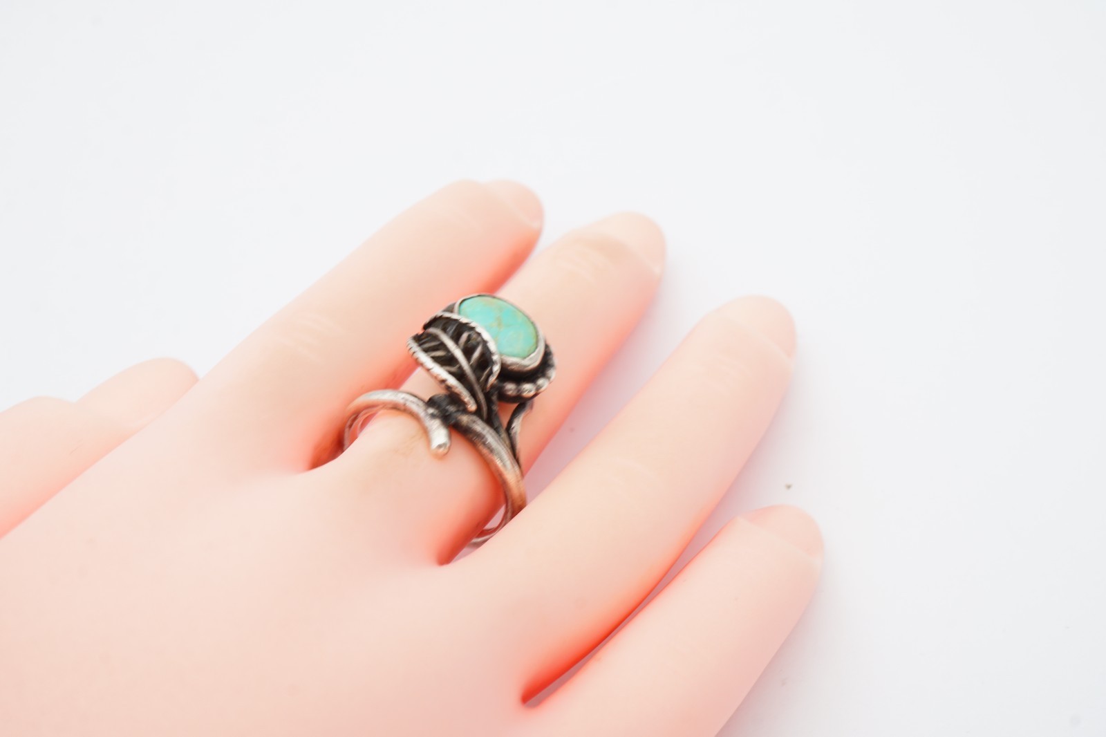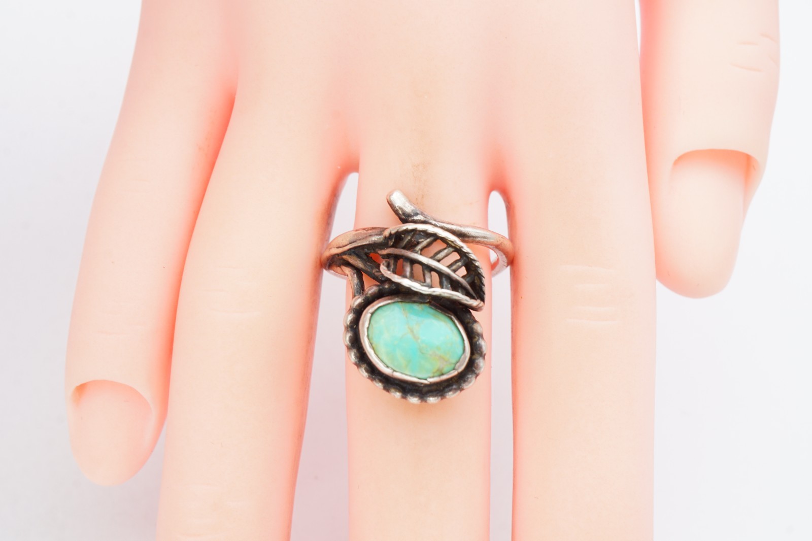 как выглядит Vintage Native American Navajo Sterling Silver Turquoise Leaf Ring Size 5 фото