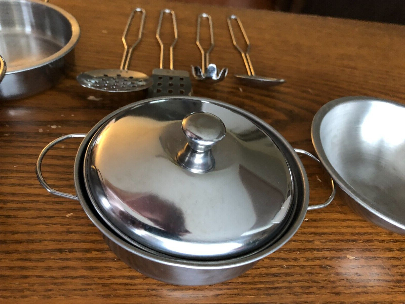 как выглядит Kids Play Kitchen Toys Pots and Pans Stainless Steel Mini Cookware 10 PC. фото