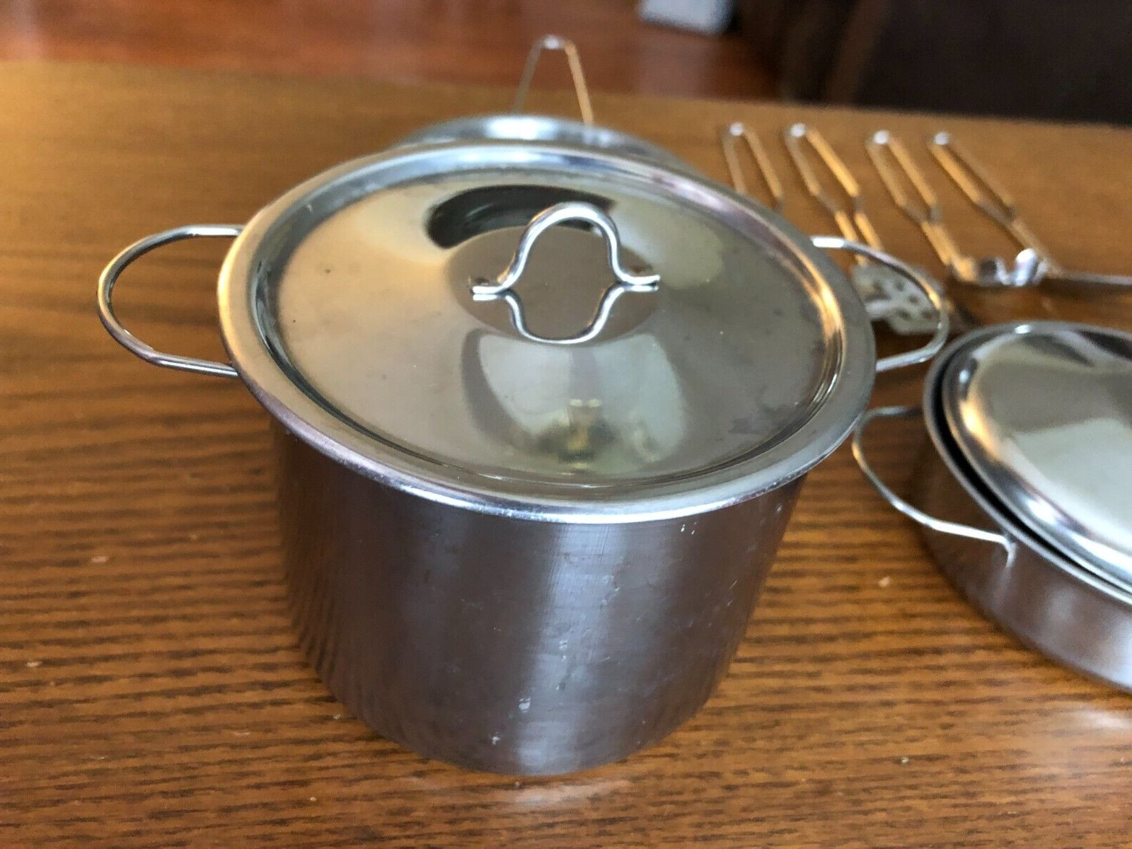 Kids Play Kitchen Toys Pots and Pans Stainless Steel Mini Cookware 10 PC.