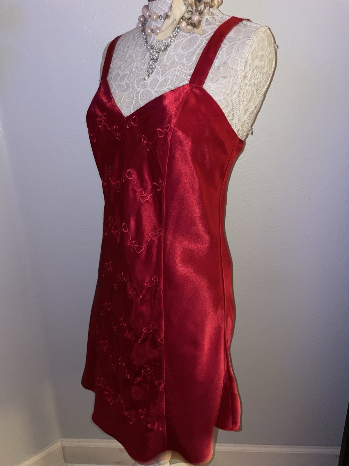 Erika Taylor Red Satin Nightie M Hearts Modest Nightgown Chemise Knee Length
