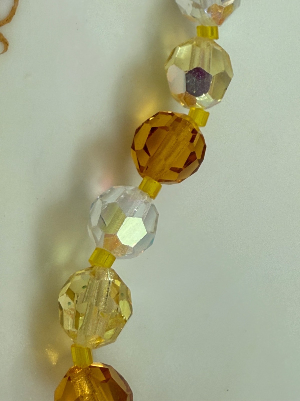 как выглядит Vintage 50s AB Glass Beaded Necklace Rhinestone Clasp Yellow Orange фото
