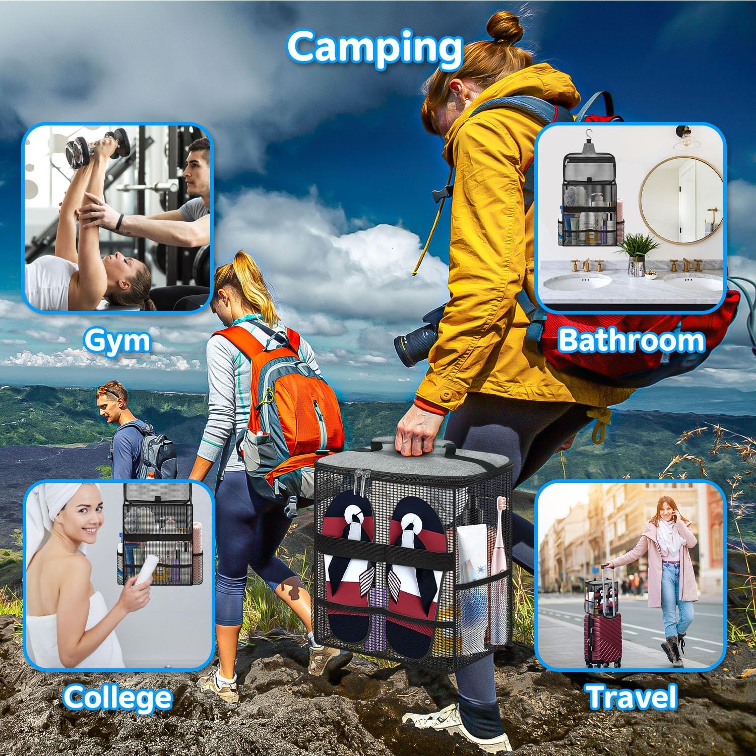 Shower Bag Mesh Caddy Toiletry Bags for Travel Bathroom Gym Camp Women Men Sh...