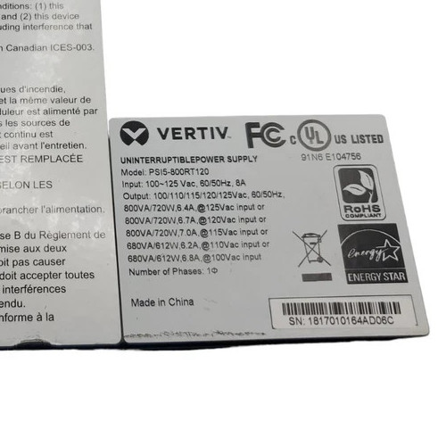 Vertiv Psi5 800 720W 120Vac Rt, PSI5-800RT120 5DA980 - TESTED