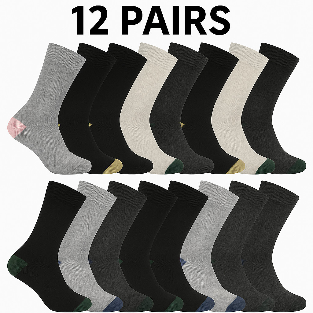 12Pairs Mens Sports Socks Cotton Rich Cushioned Everyday Crew Socks UK Size 6-13