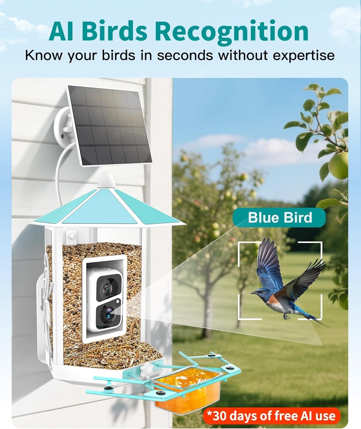 Smart Bird Feeder with Camera Solar Powered Camera Bird Feeder 2K Live Feed