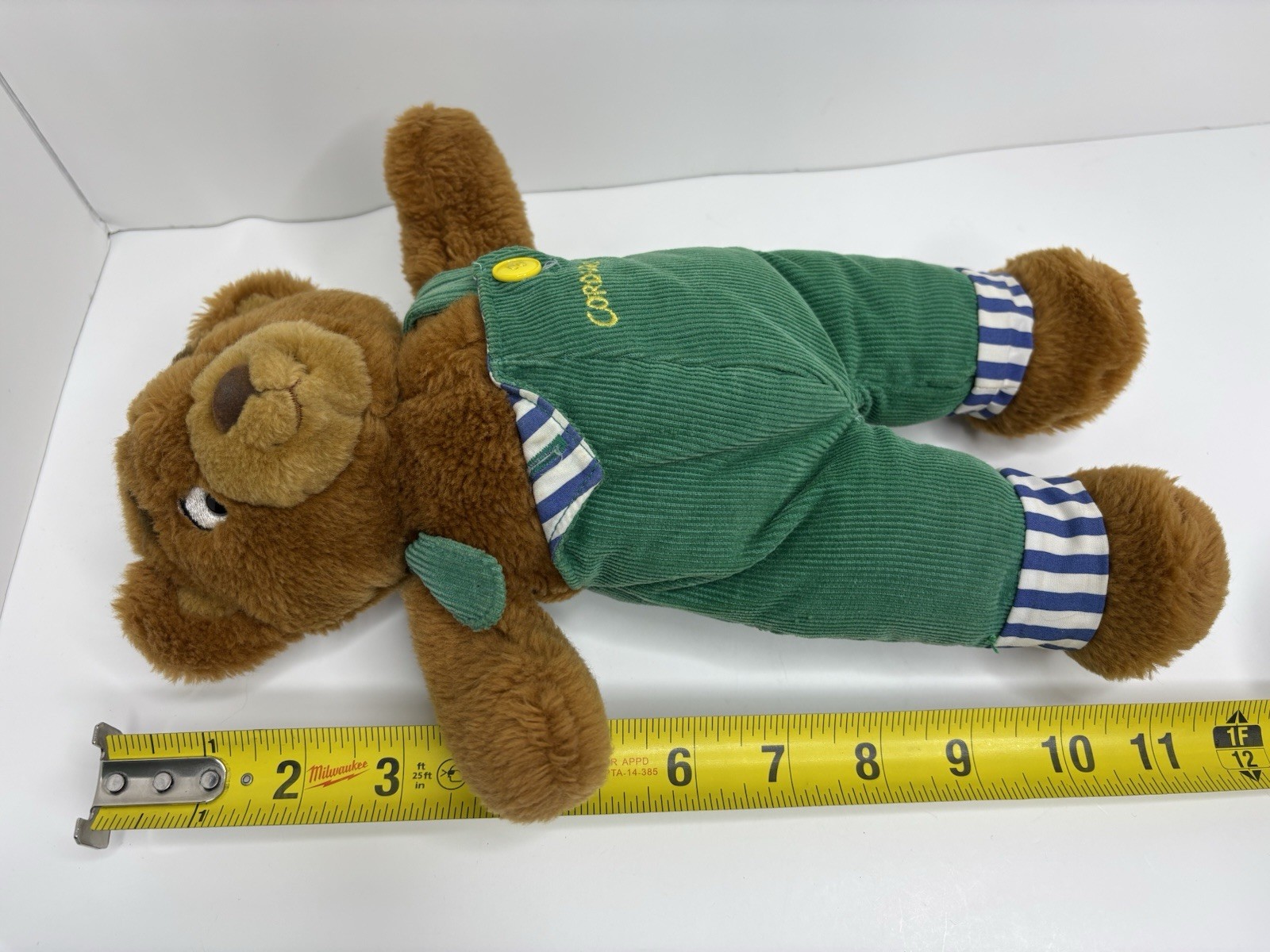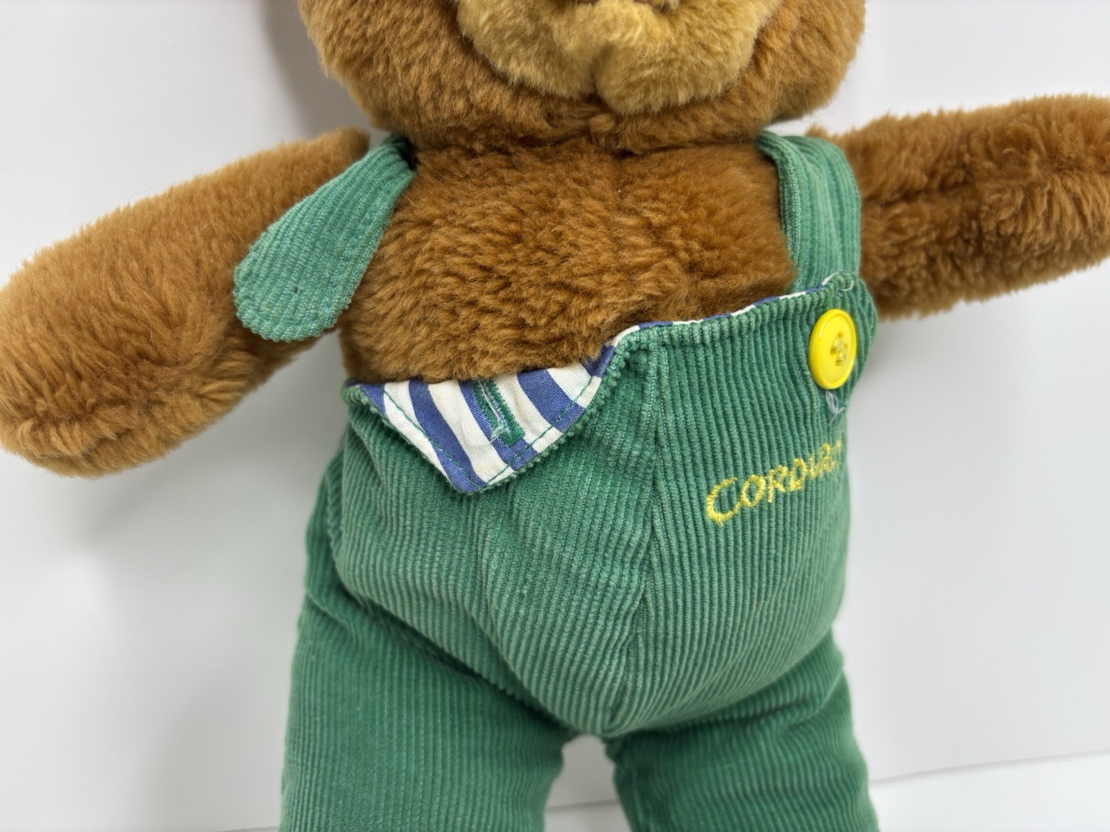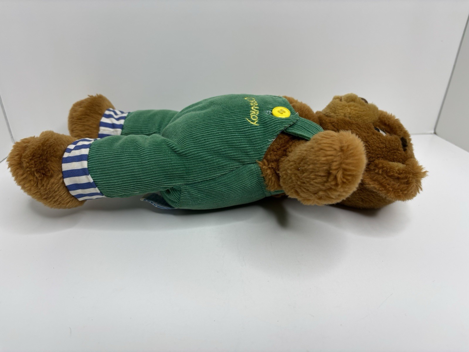1996 Vintage Corduroy Bear Green Overalls Plush Toy Eden Toys