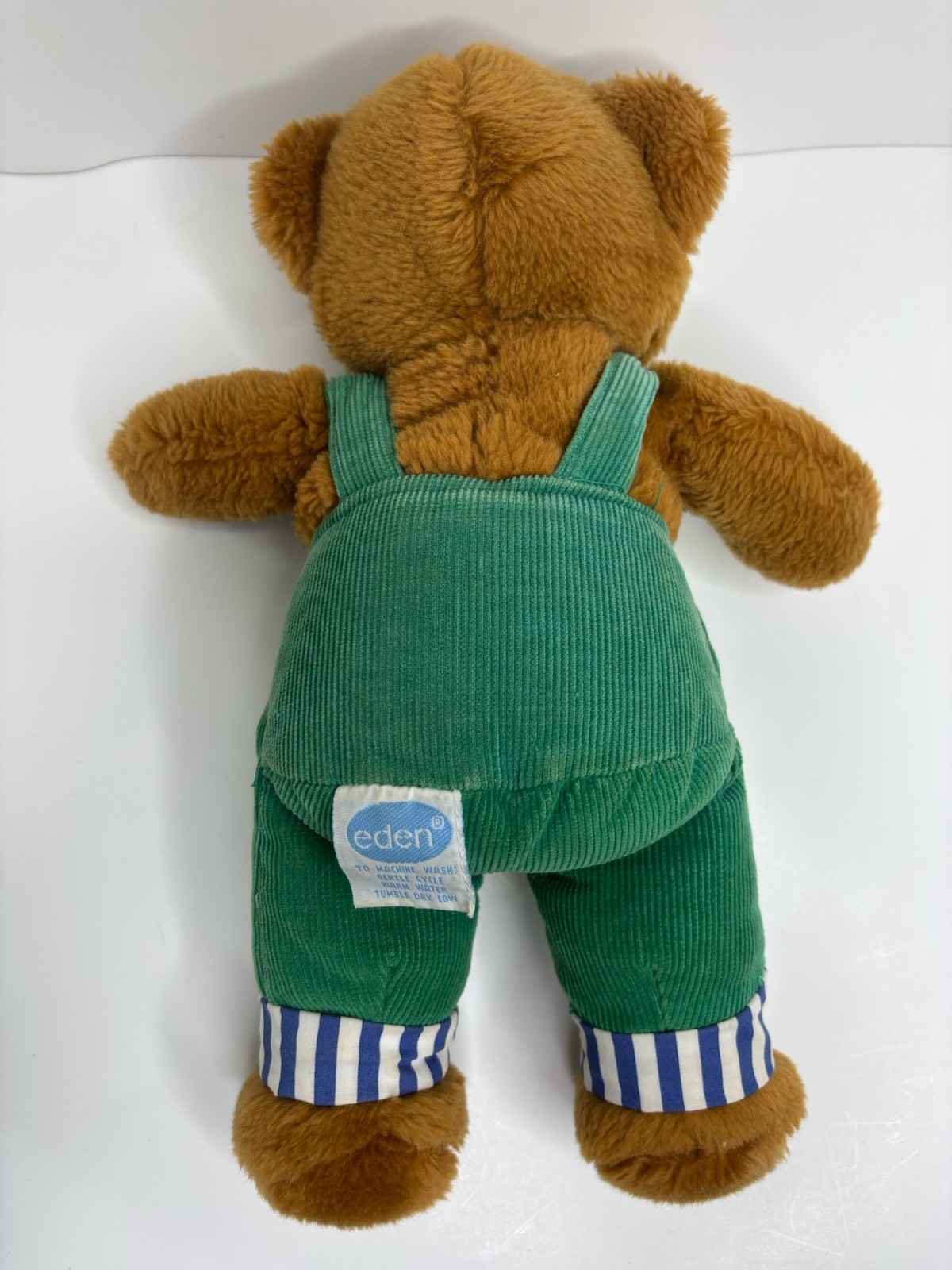 как выглядит 1996 Vintage Corduroy Bear Green Overalls Plush Toy Eden Toys фото