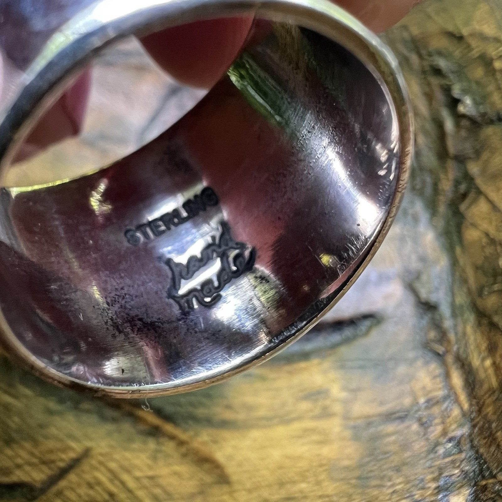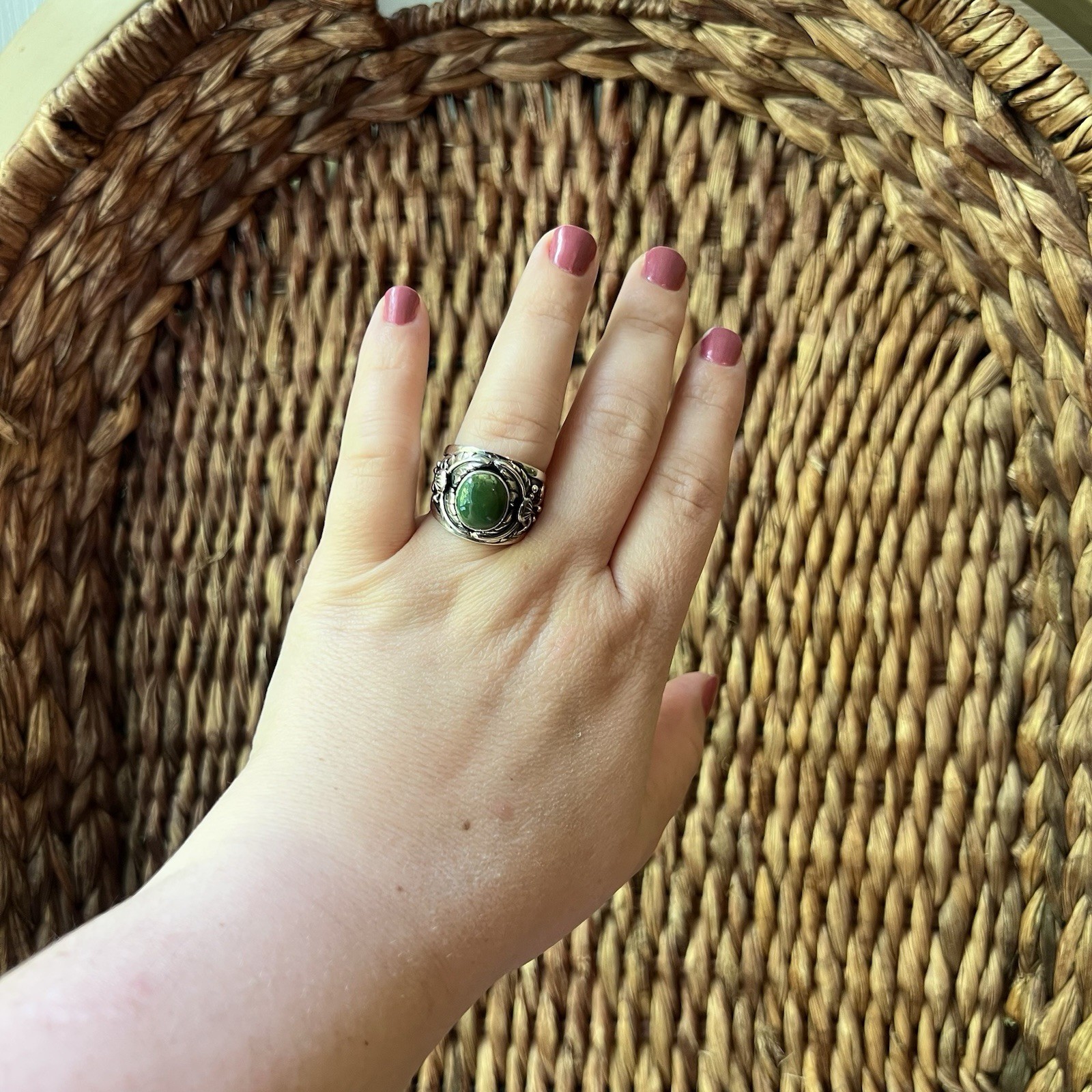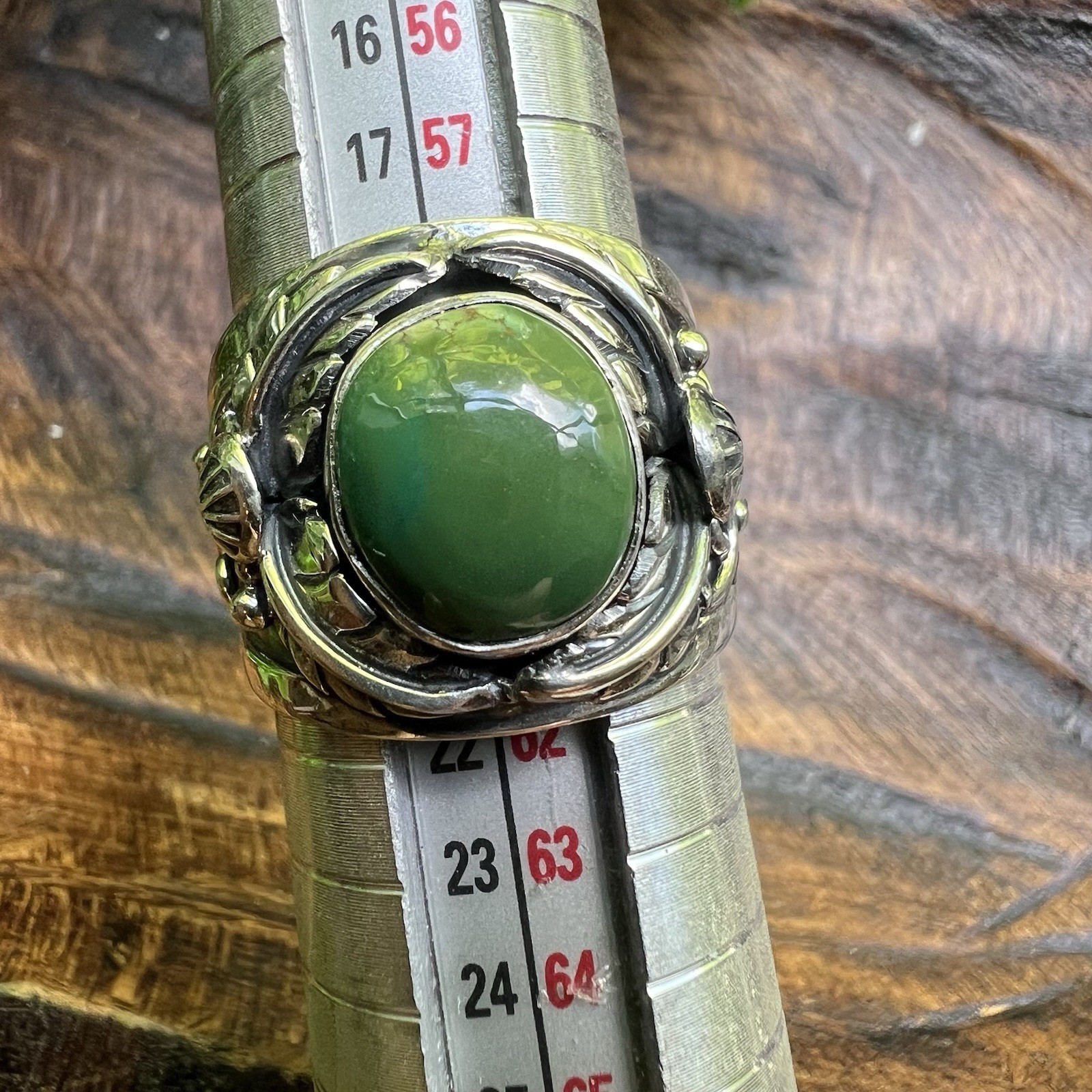 как выглядит 925 Sterling Silver Green Turquoise Ornate Wide Band Ring Sz 9 Southwest Boho фото