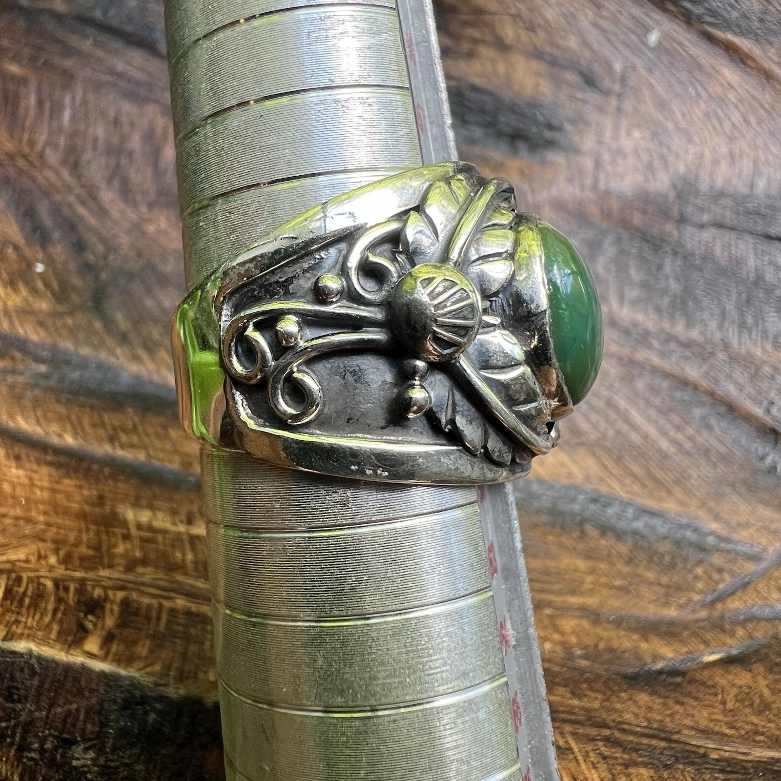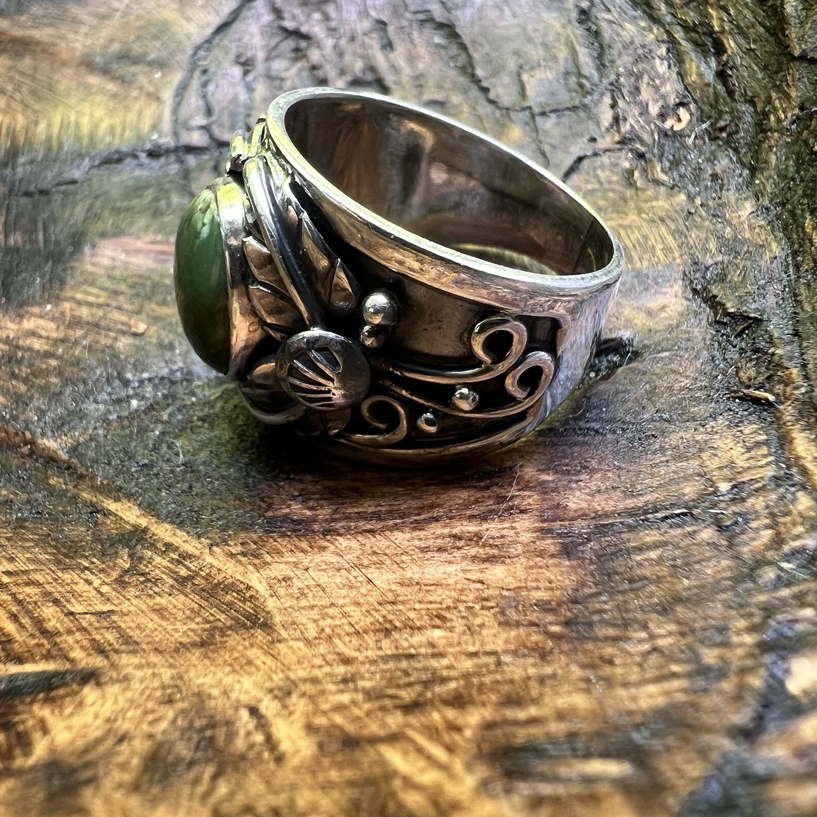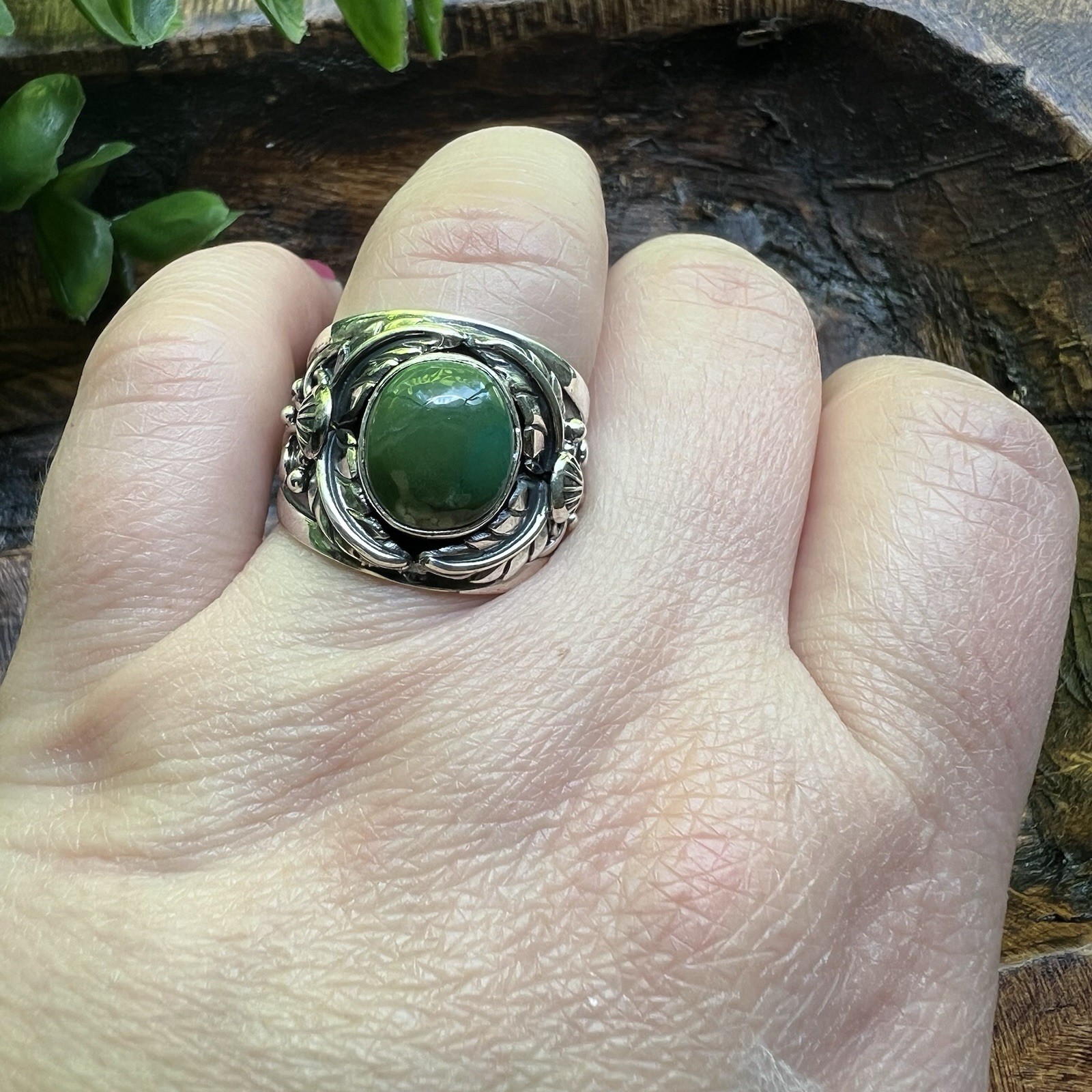 925 Sterling Silver Green Turquoise Ornate Wide Band Ring Sz 9 Southwest Boho