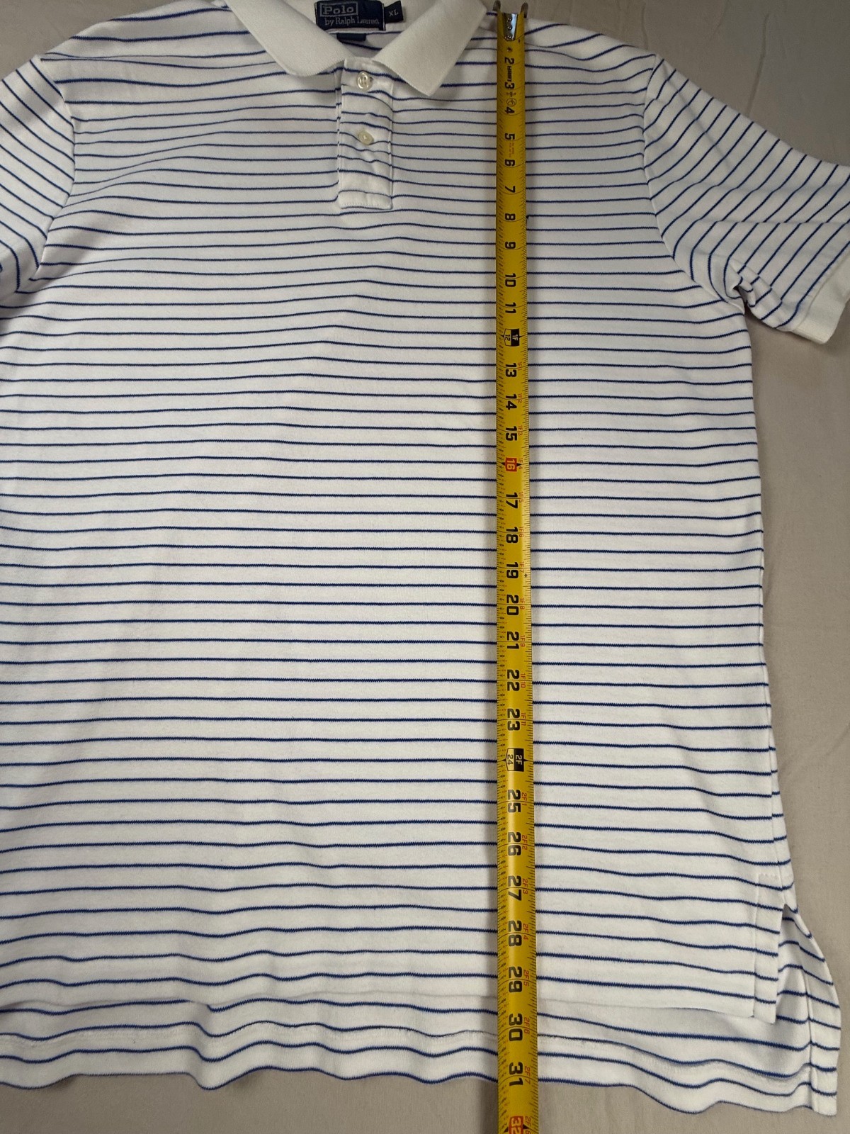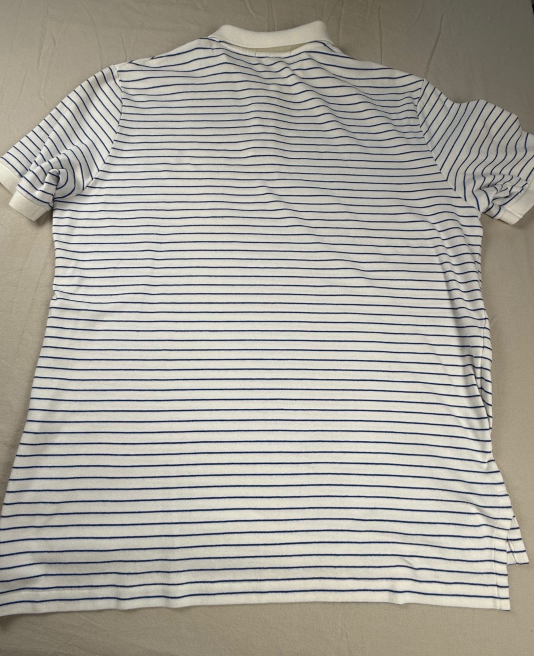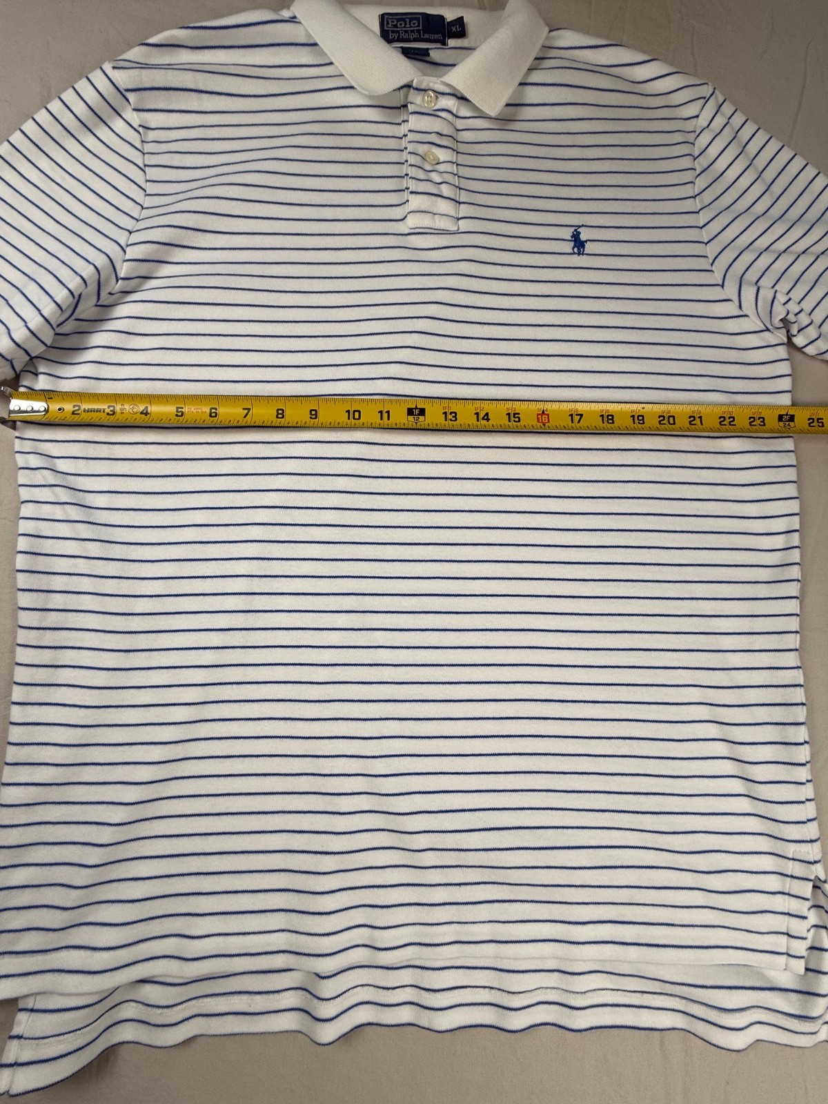 как выглядит Polo Ralph Lauren White w/Blue Stripes Short Sleeve Polo Shirt Mens XL Cotton фото