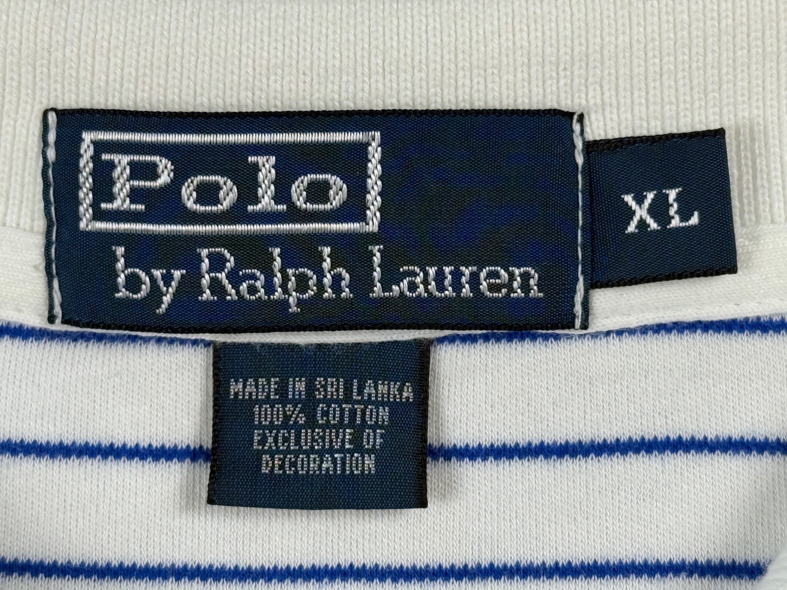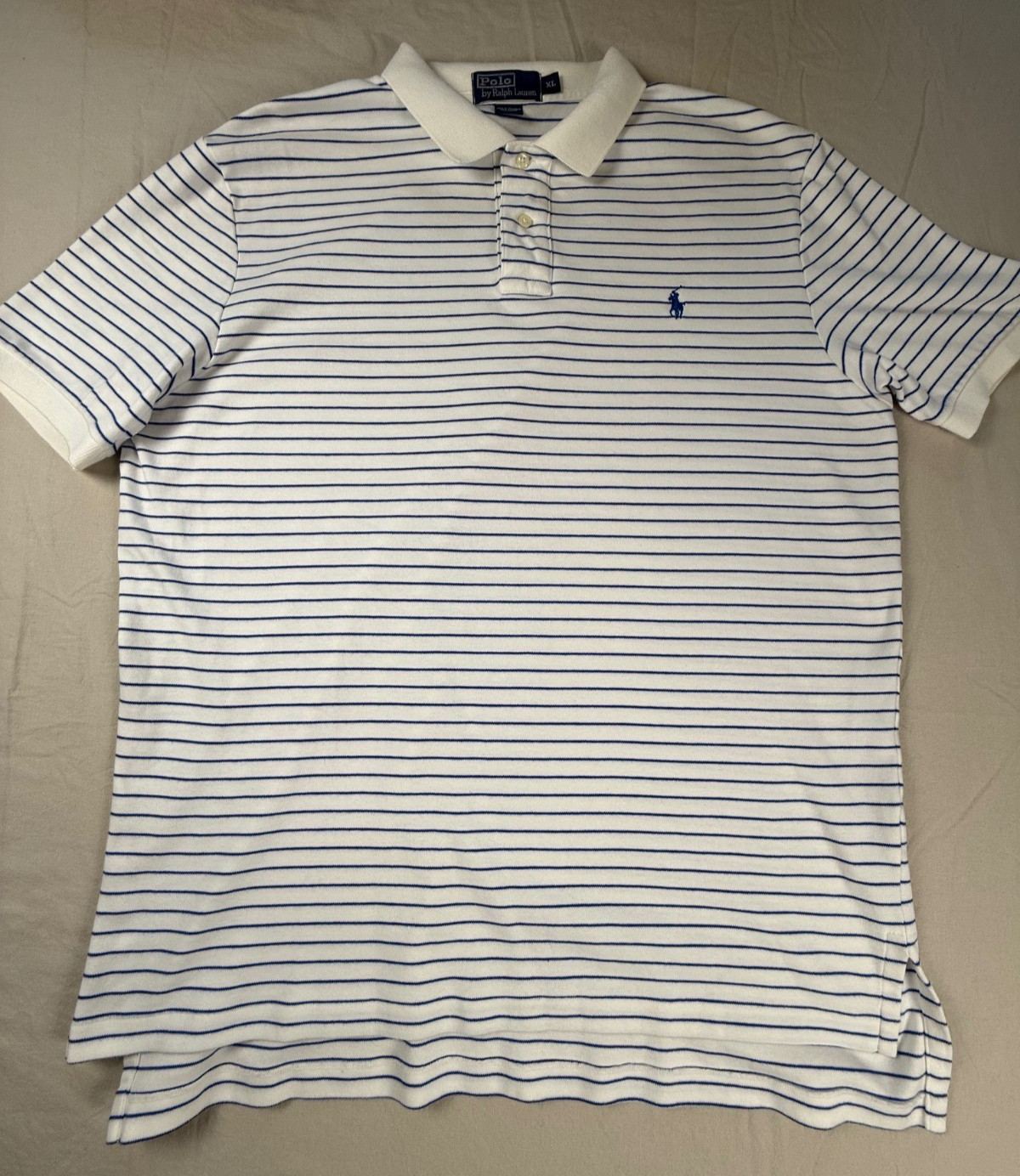 Polo Ralph Lauren White w/Blue Stripes Short Sleeve Polo Shirt Men's XL Cotton