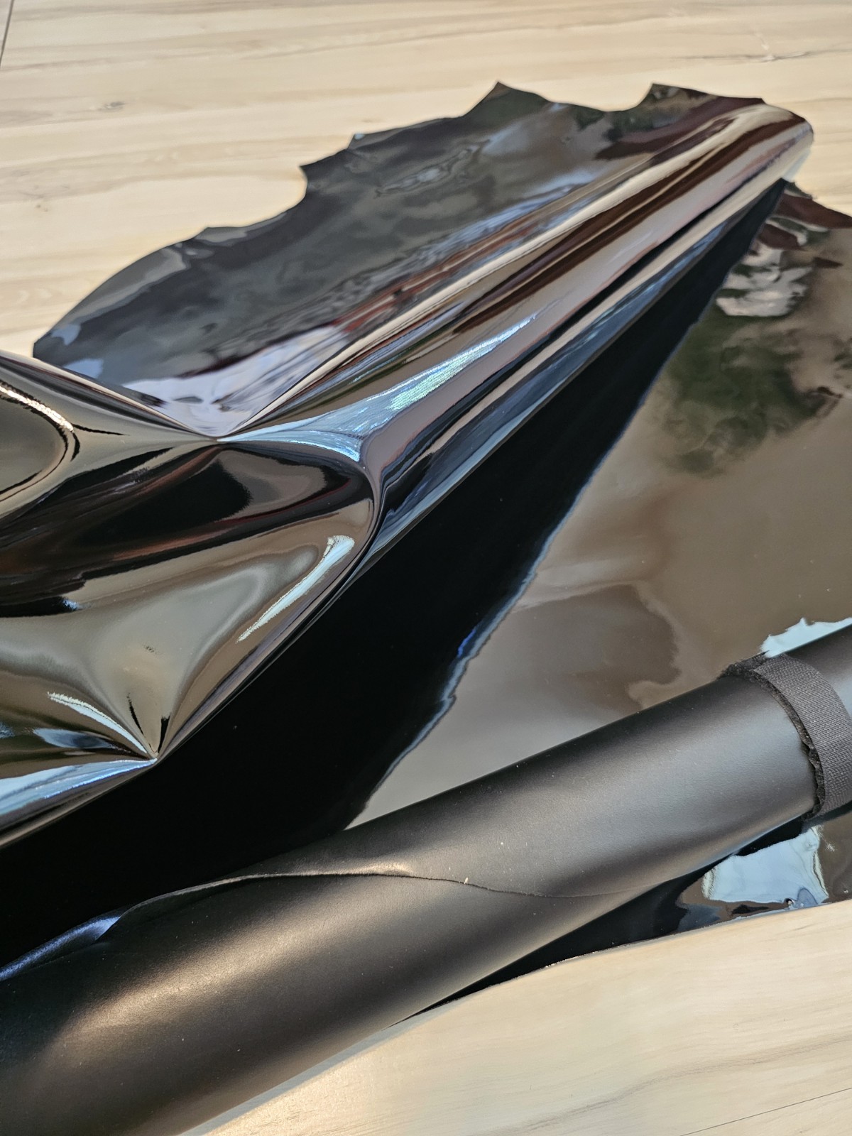 как выглядит JET BLACK SHEEPSKIN LAMBSKIN LEATHER HIDE PANEL,SHEET,SQUARE,12x12 PATENT GLOSSY фото