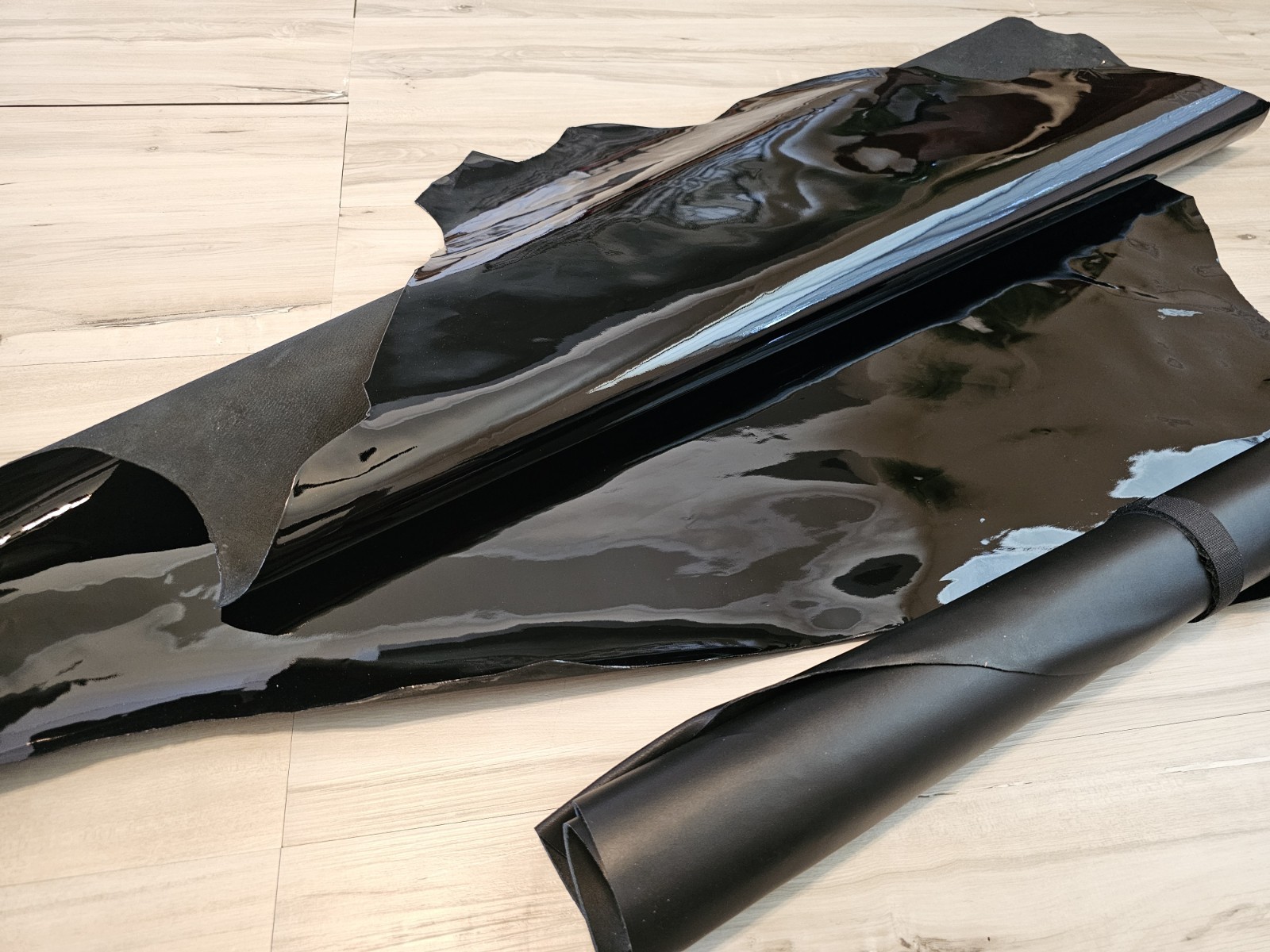 JET BLACK SHEEPSKIN LAMBSKIN LEATHER HIDE PANEL,SHEET,SQUARE,12x12 PATENT GLOSSY