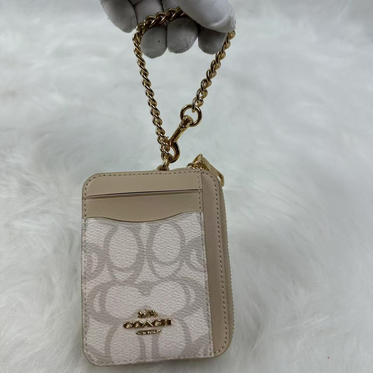 Coach Zip Card Case In Sketch Signature Canvas CBL78, Gold/Ivory NWT