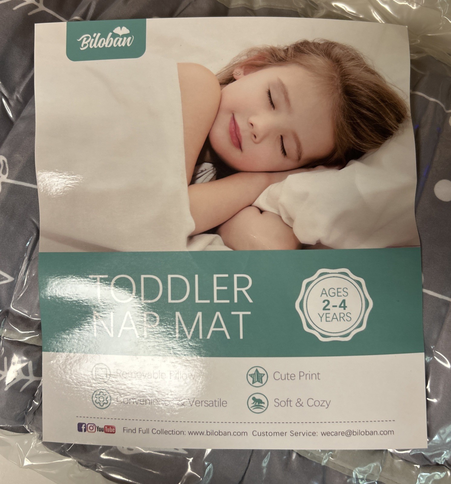 Biloban Toddler Nap Mat with Removable Pillow Arrowhead Gray New