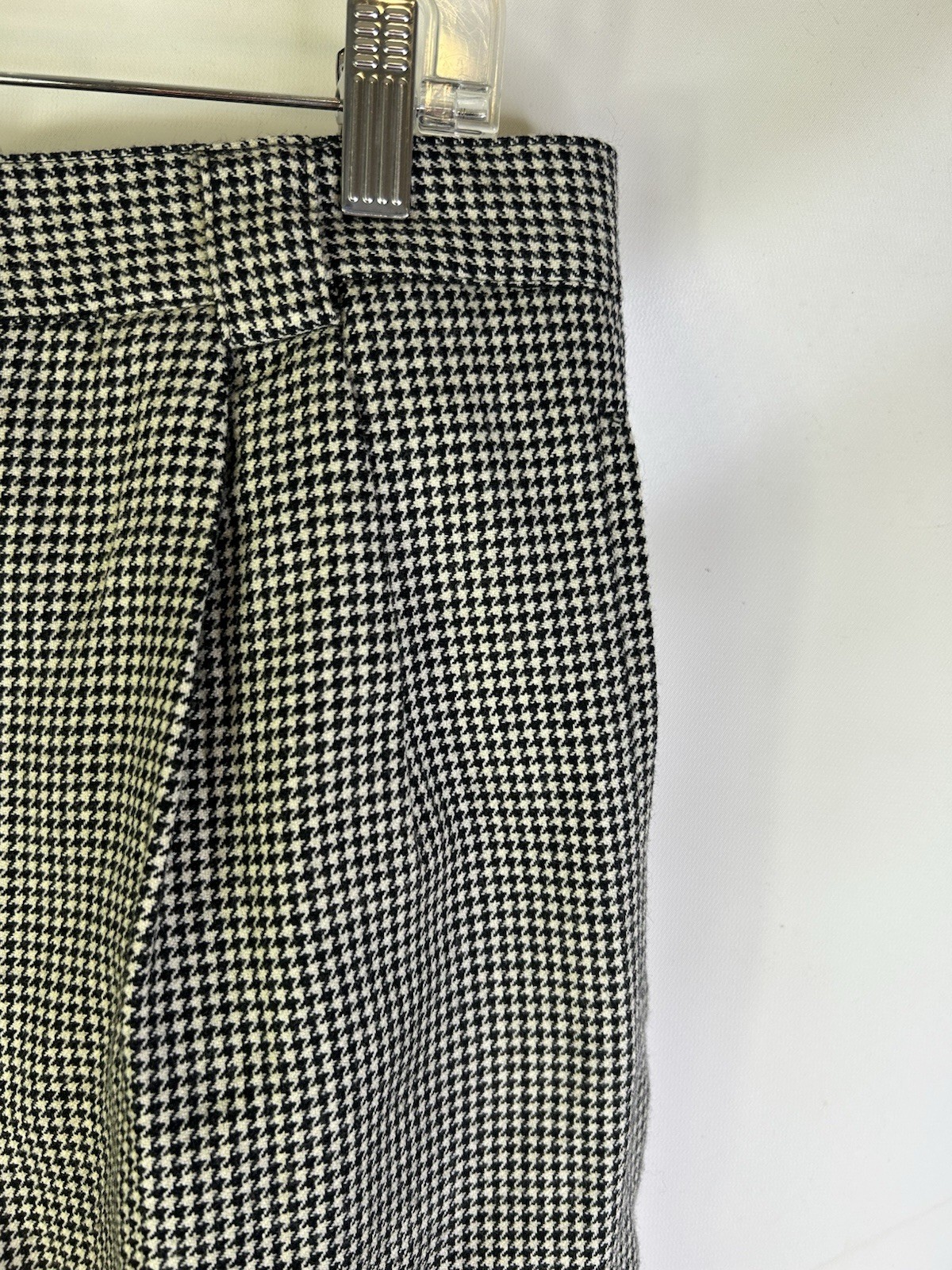 Vintage 90s Womens 16 Wool Houndstooth Plaid Pleated High Rise Dress Pants