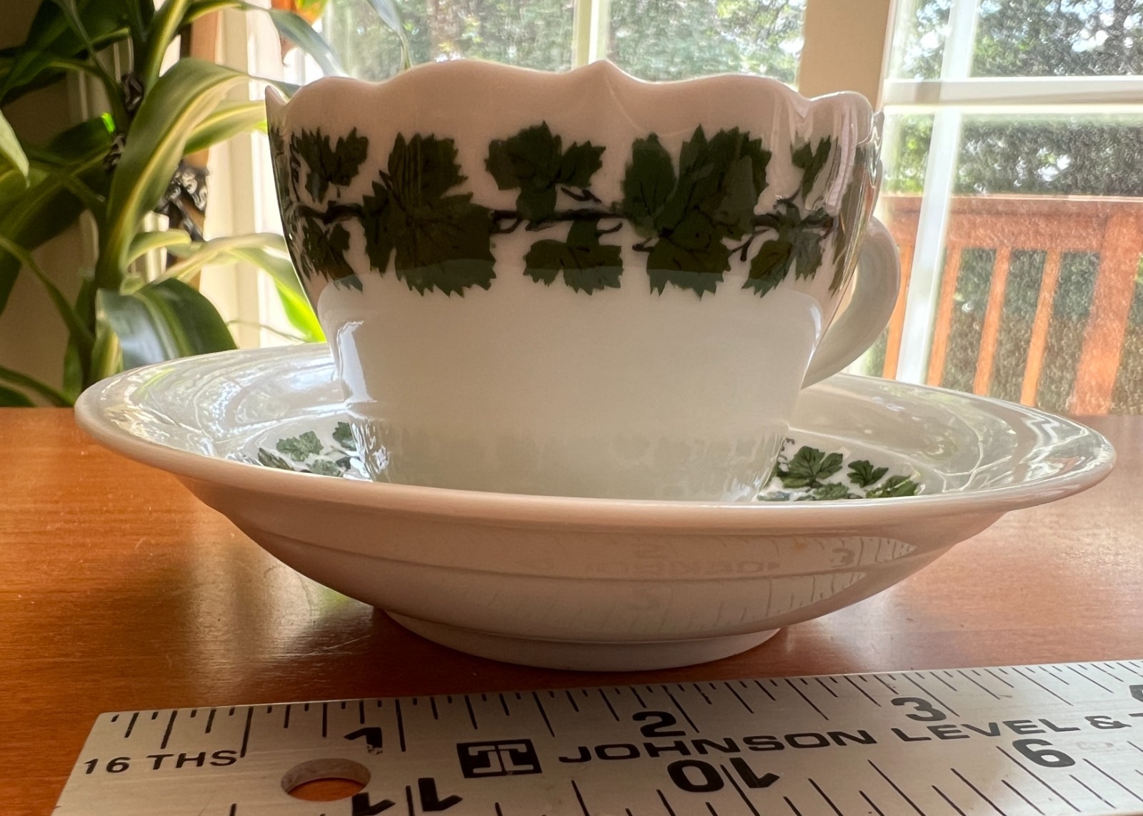 как выглядит MEISSEN GREEN IVY 2" TALL TEACUP 1" TALL SAUCER; MINT CONDITION фото