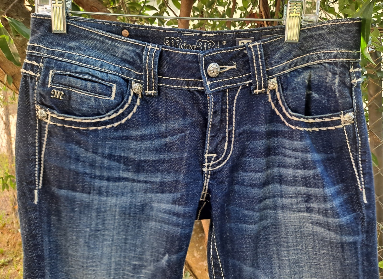 Miss Me Rhinestone Studded Cross Denim Thick Stitch Capri
