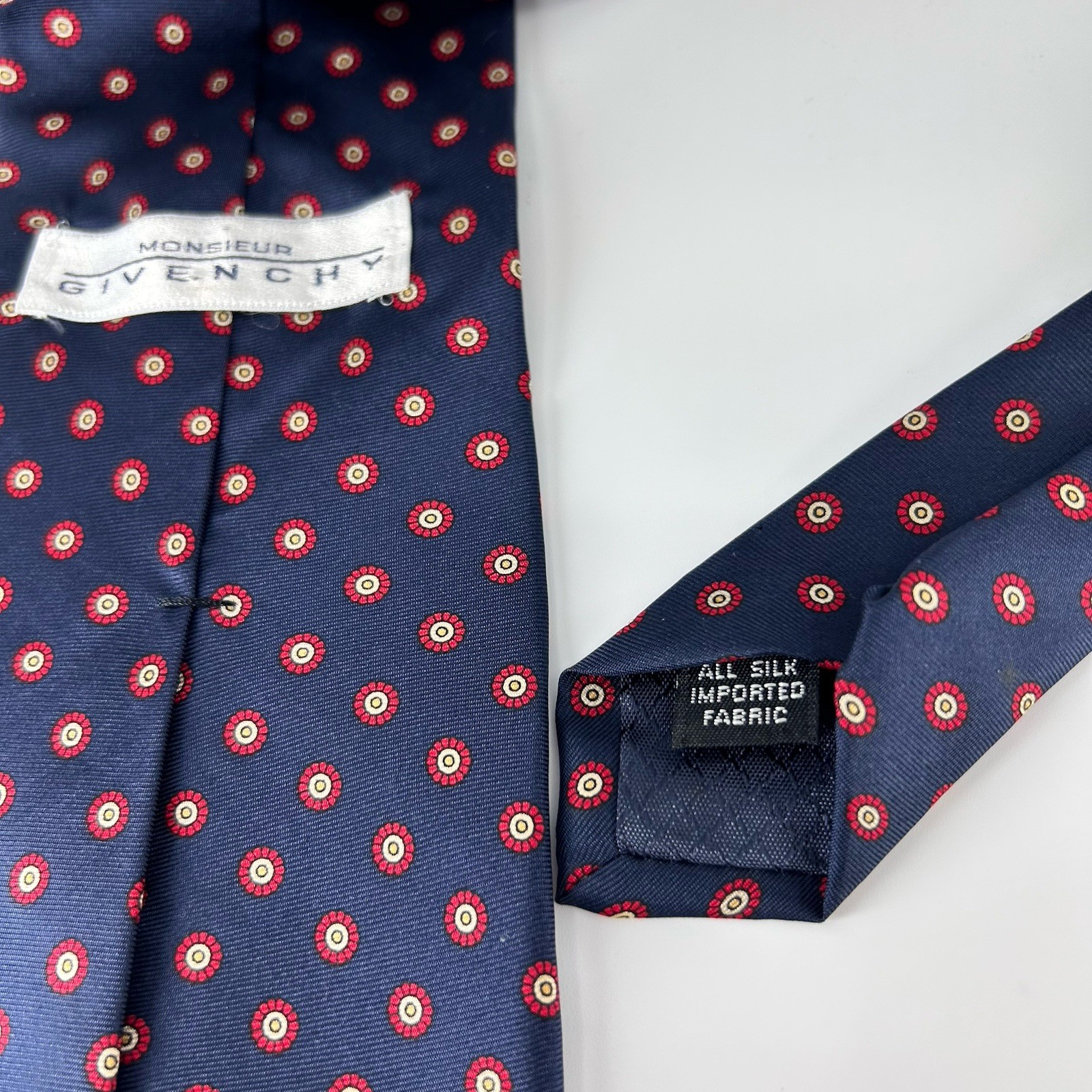 Vintage Givenchy Monsieur Silk Tie Red Navy Red Men's Luxury Necktie 4 x 58