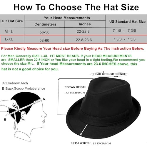 2 Pack Manhattan Fedora Hat for Men Gangster Trilby Black/Grey size:l-xl