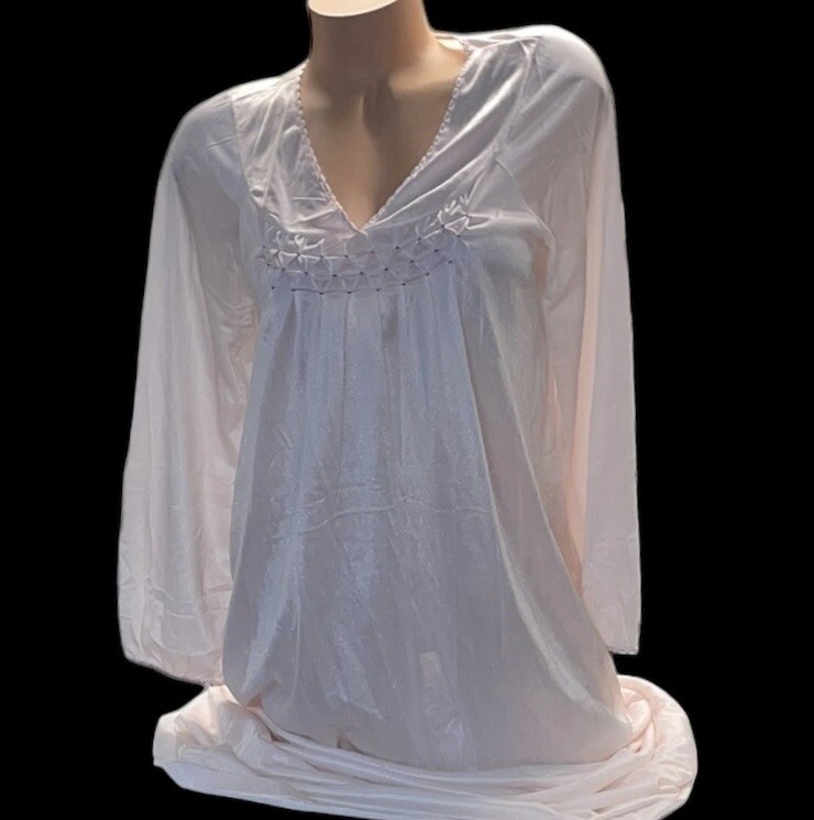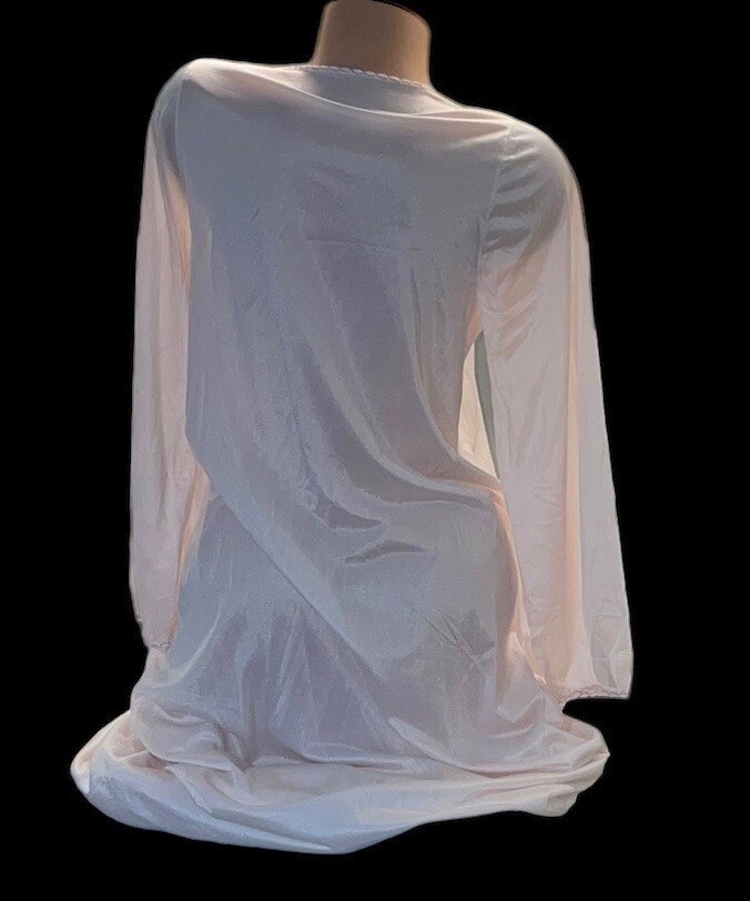 Sears Pink Shiny Slippery Embroidery Long Nightgown Womens M 34.5 /37