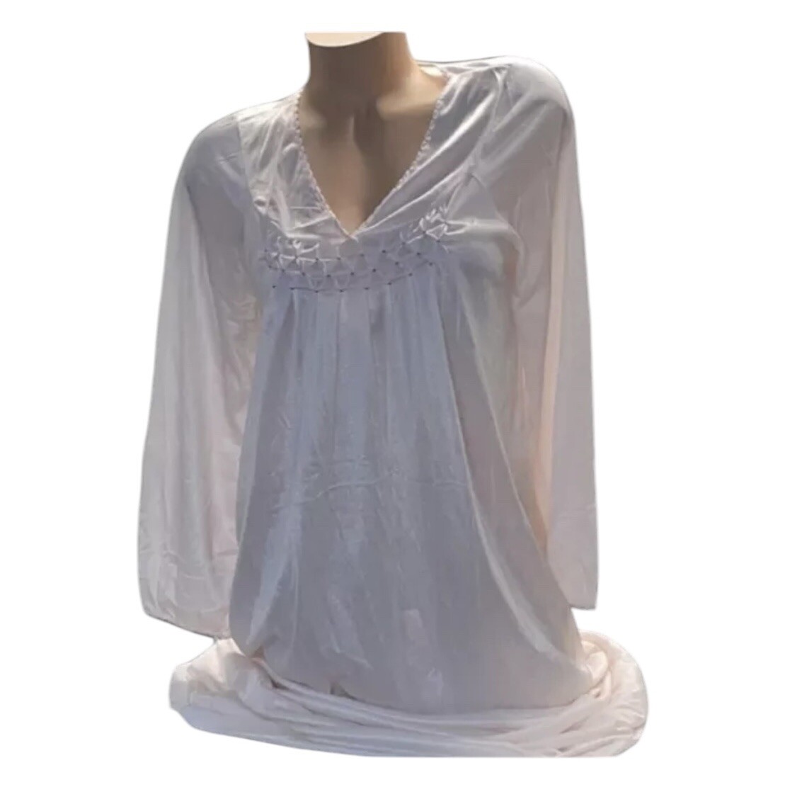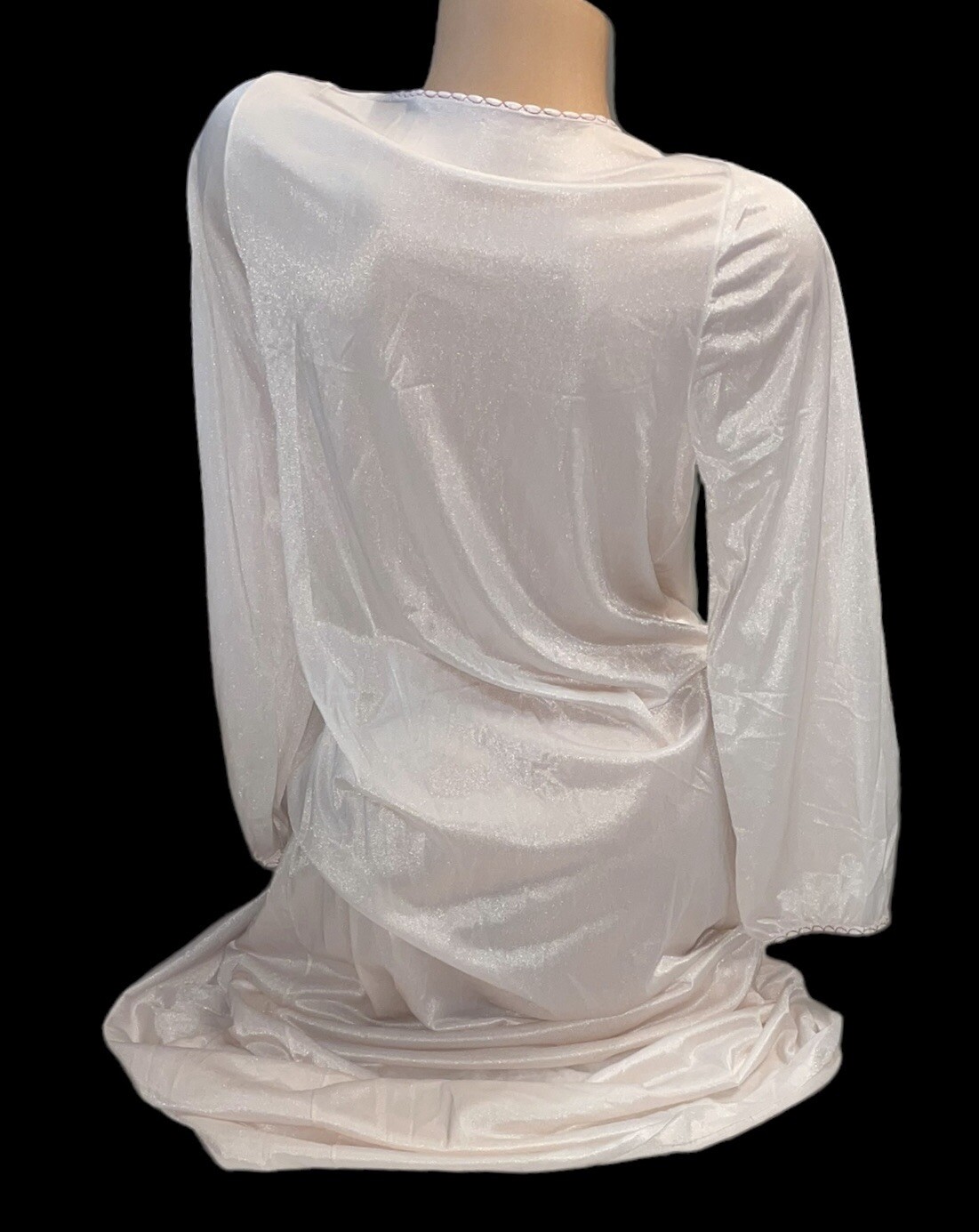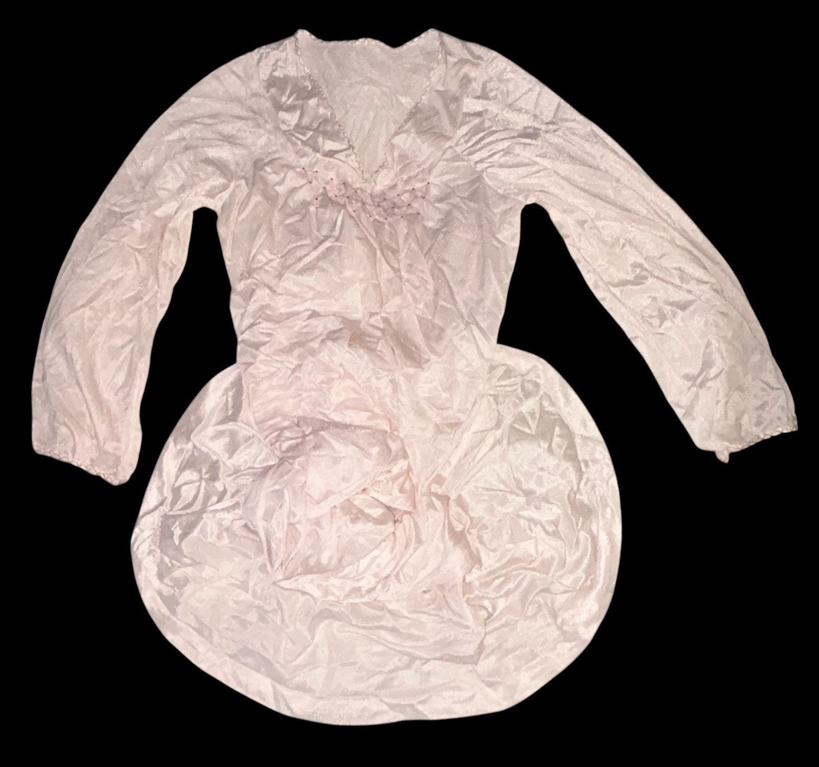 как выглядит Sears Pink Shiny Slippery Embroidery Long Nightgown Womens M 34.5 /37 фото