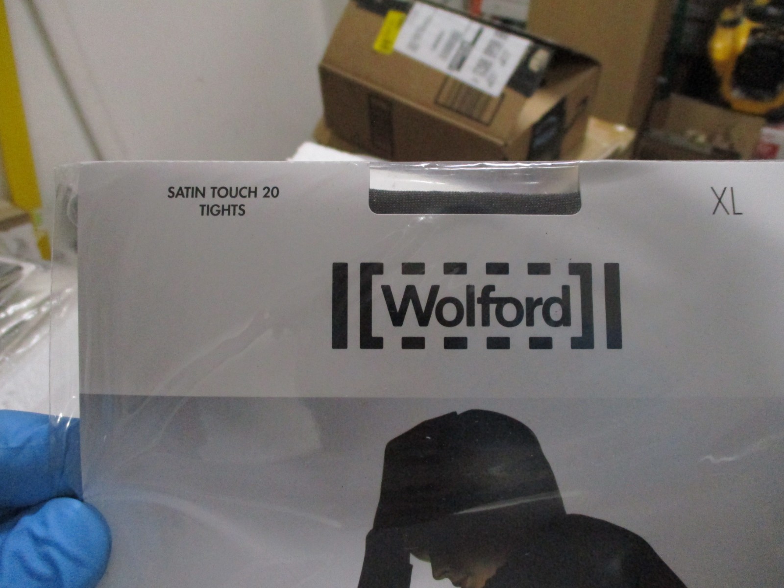 1 PR WOLFORD SATIN TOUCH 20 SHEER SANDALFOOT PANTYHOSE SIZE EXTRA LARGE BLACK