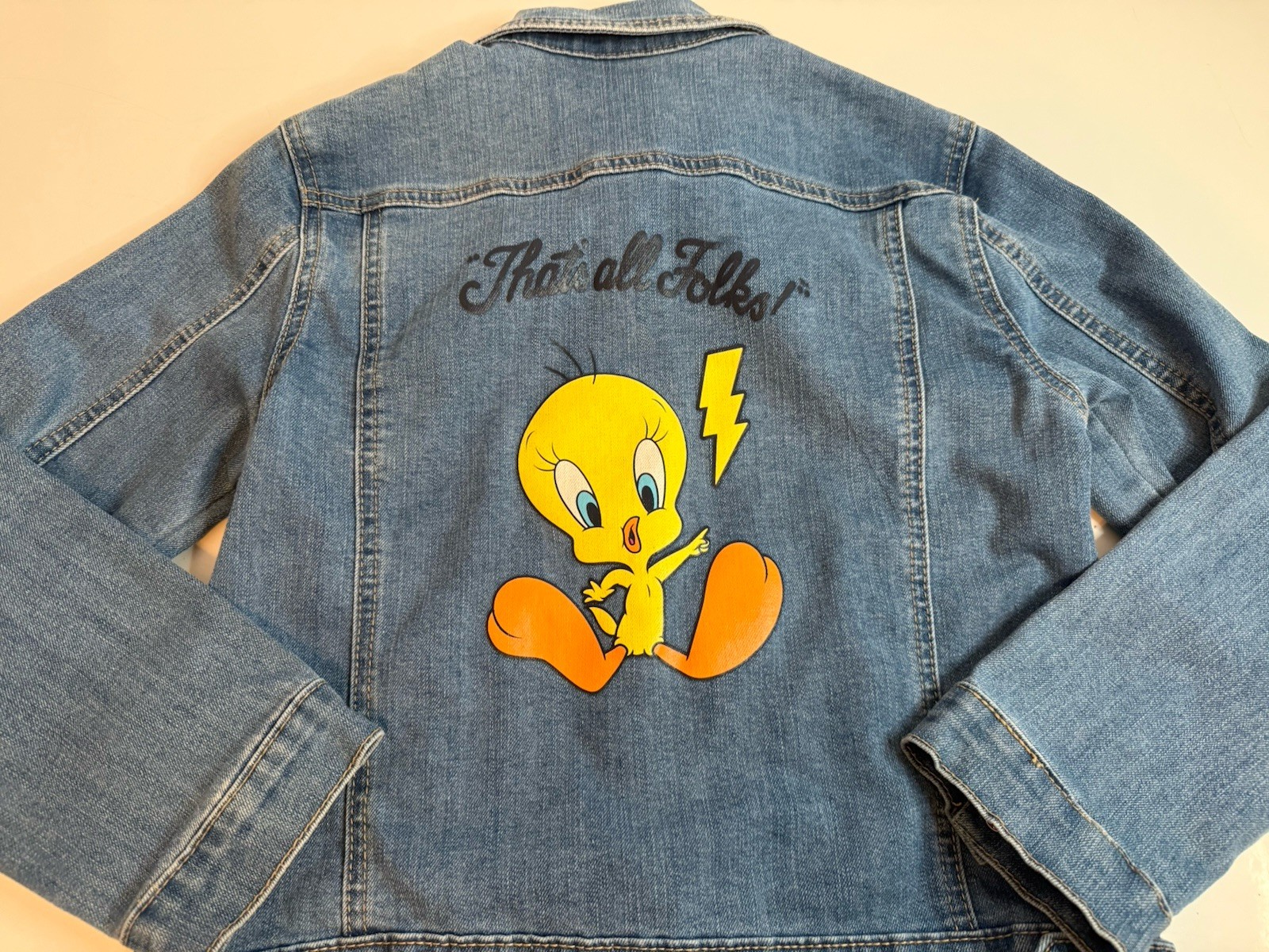 Looney Tunes Tweety Bird Kids Large 10-12 Denim Jacket That's All Folks