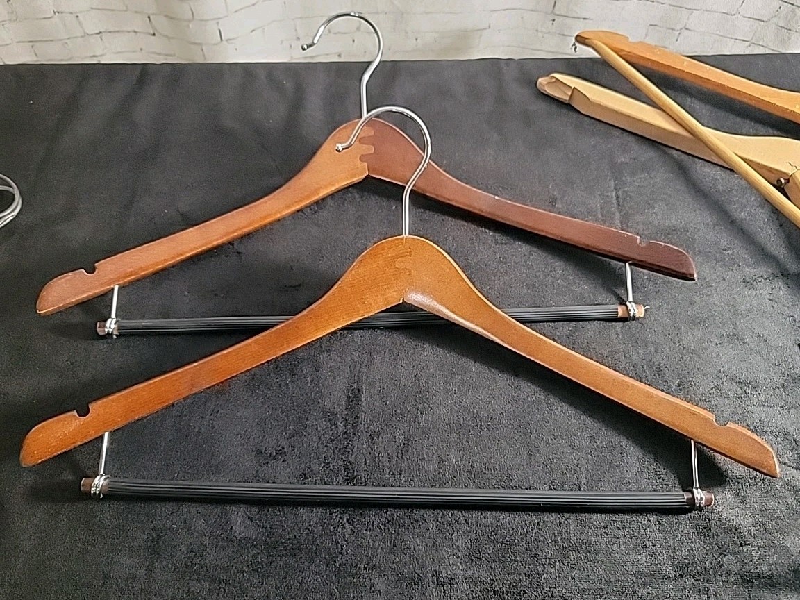 как выглядит Vtg. Wooden Clothes Hangers Hotel PEARSON CHICAGO HOTEL STATLERS 4 Unmarked фото