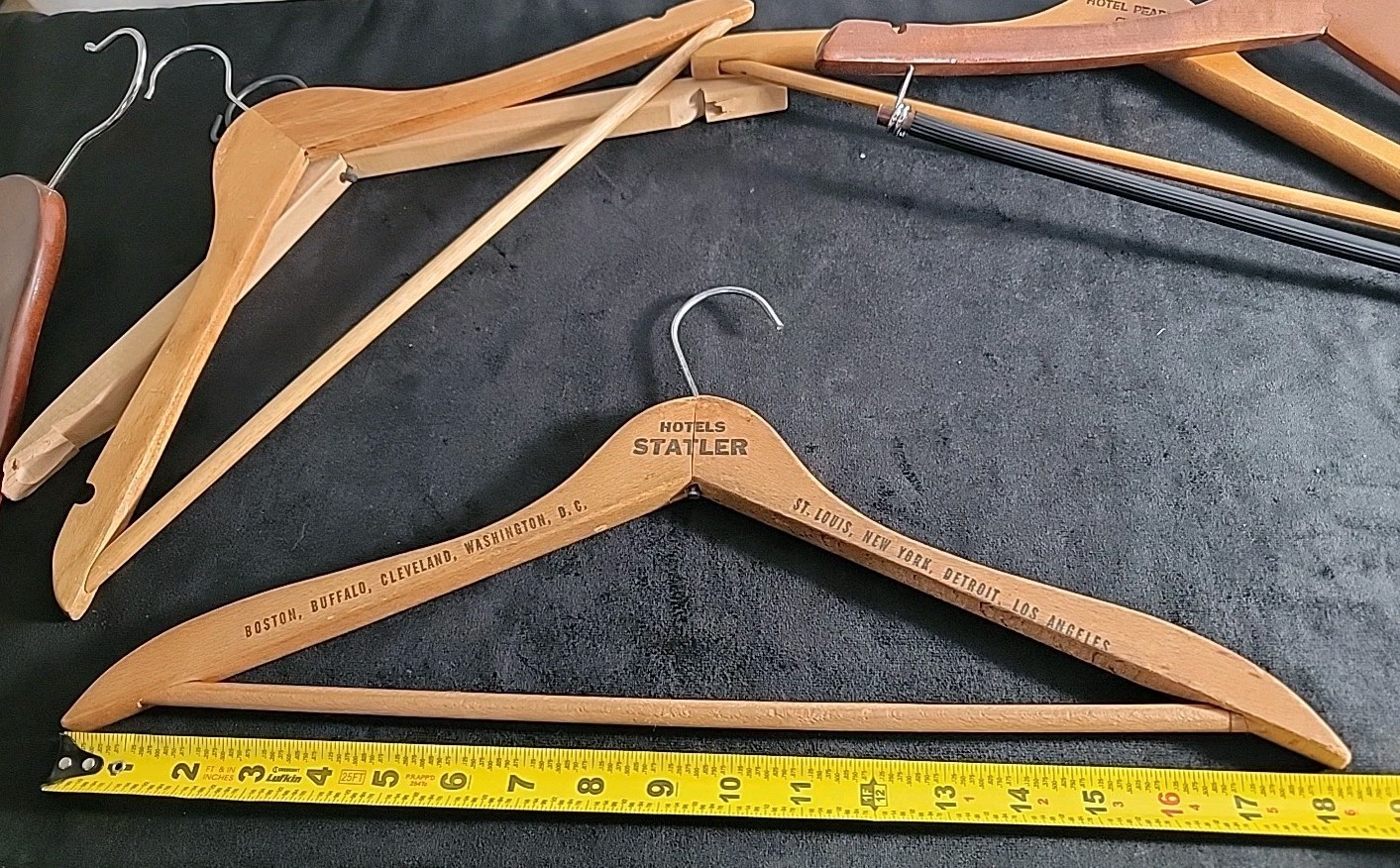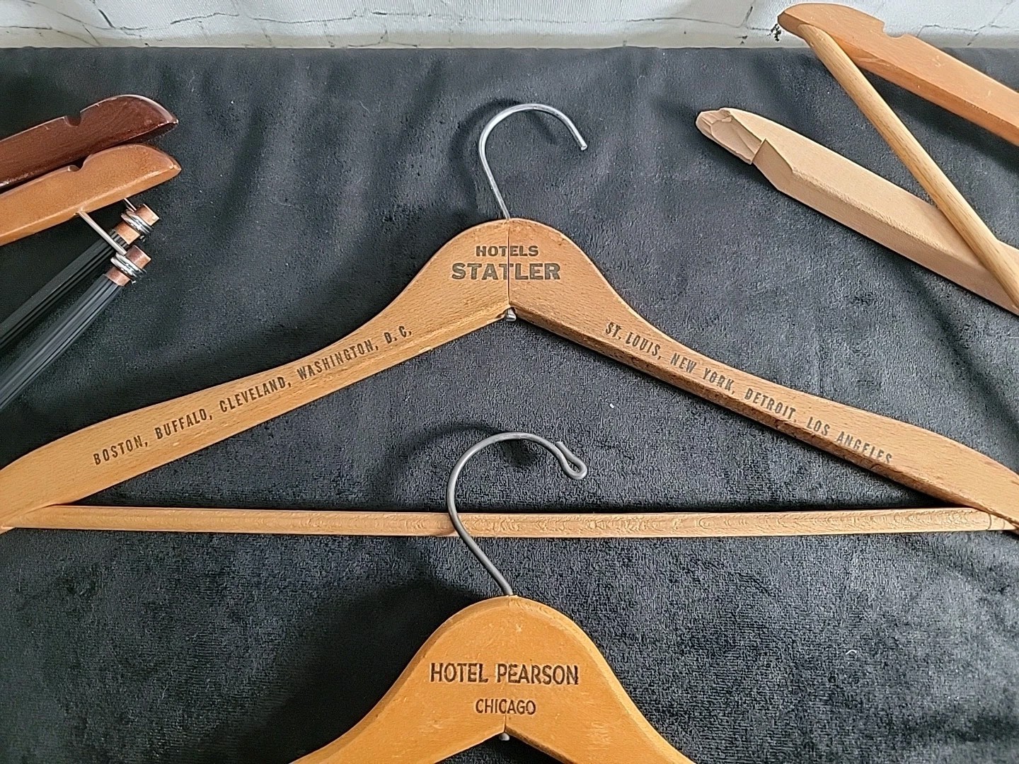 Vtg. Wooden Clothes Hangers Hotel PEARSON CHICAGO HOTEL STATLERS 4 Unmarked