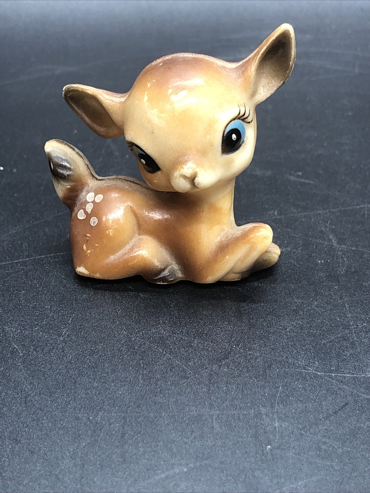 Vtg. Hard Plastic Deer Fawn Big Blue Eyes Christmas Set Of 2 Figures Hong Kong