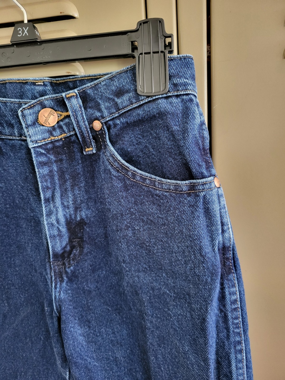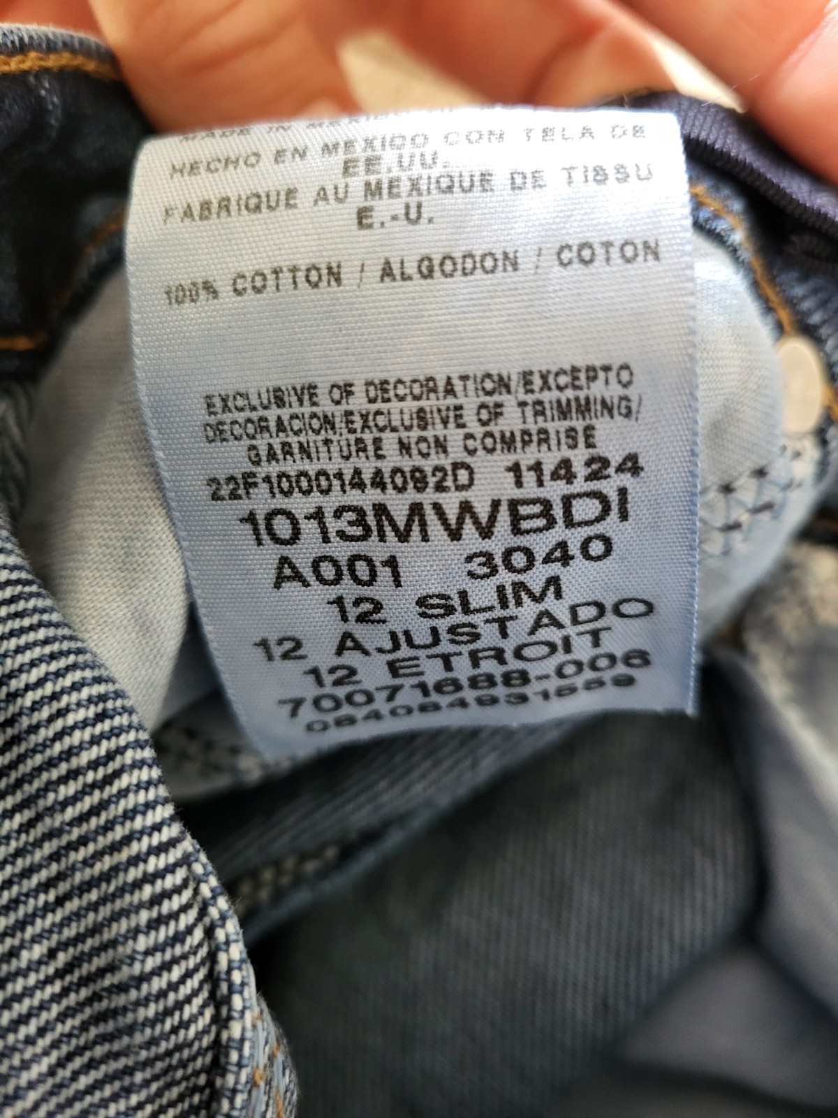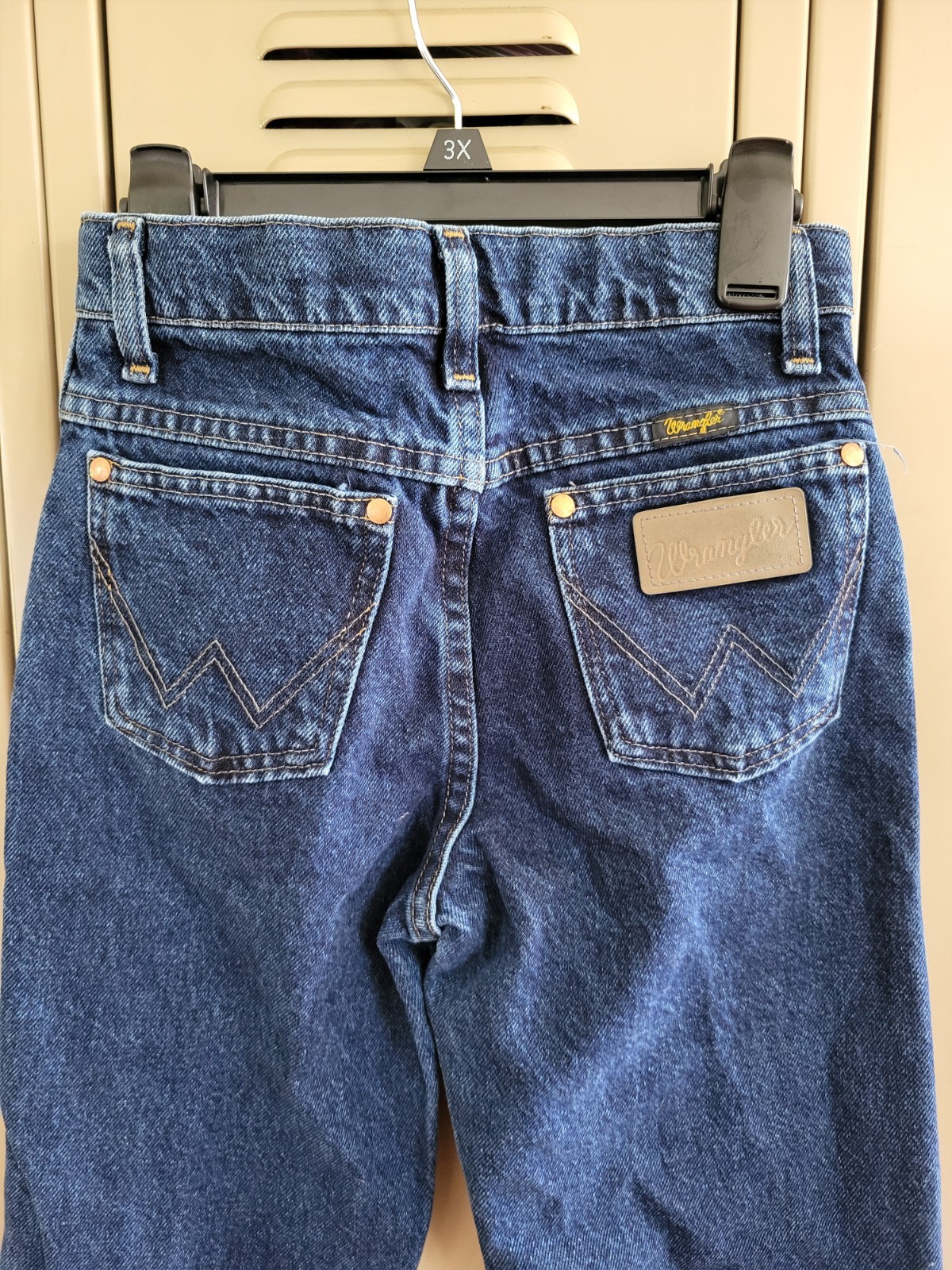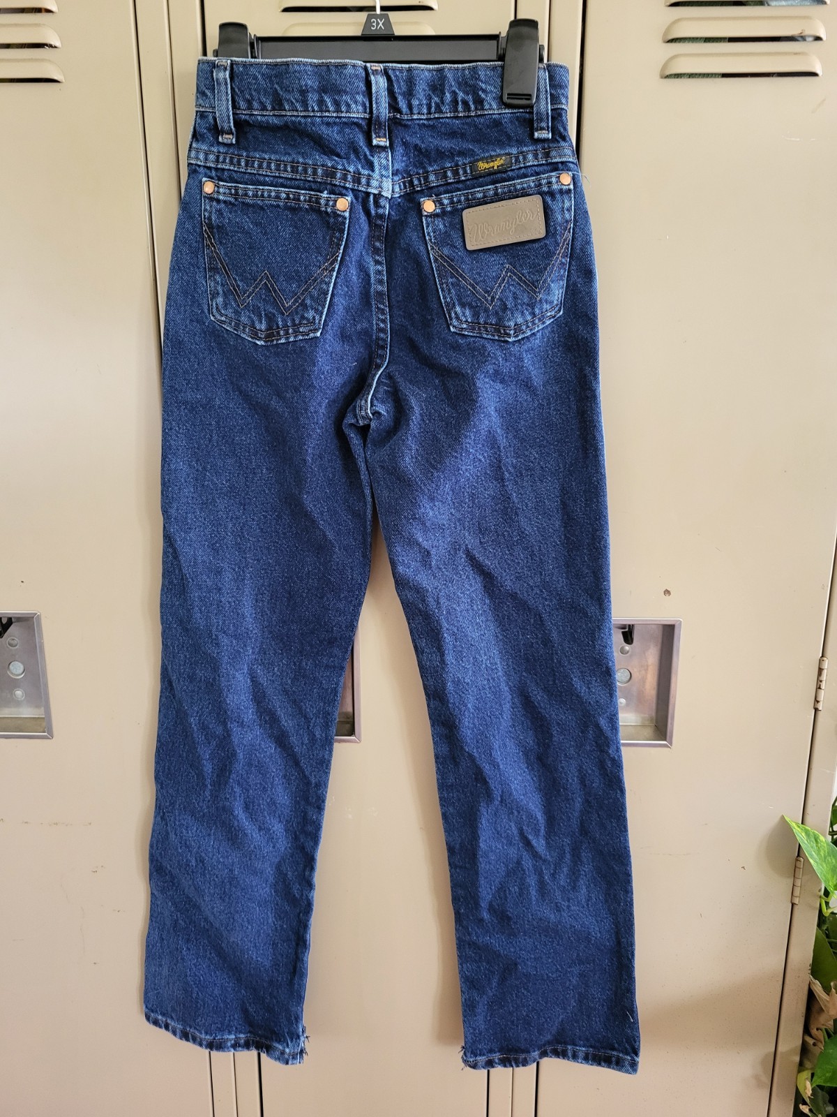 как выглядит Wrangler Jeans Boys 12 Slim Blue Denim Leather Logo Dark Adjustable Waist фото
