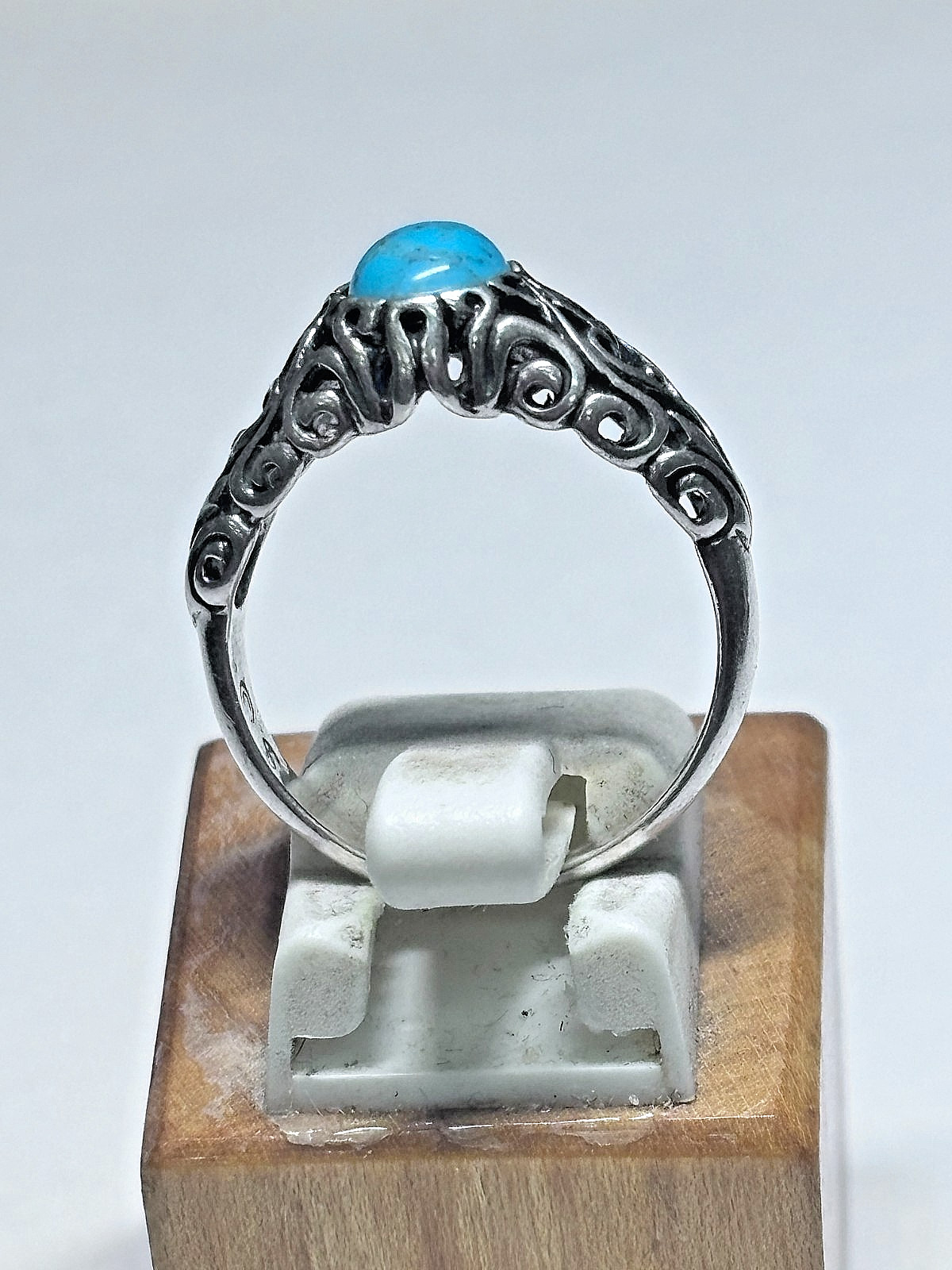Vintage Sterling Silver Turquoise Filigree 3.6g Sz 8