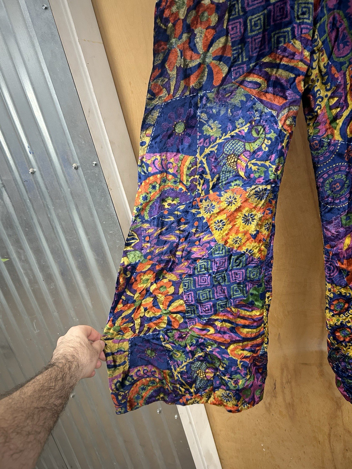 Vintage 1960s Hippy Psychedelic Disco Velvet Bell Bottoms Pants Size 27x27 USA
