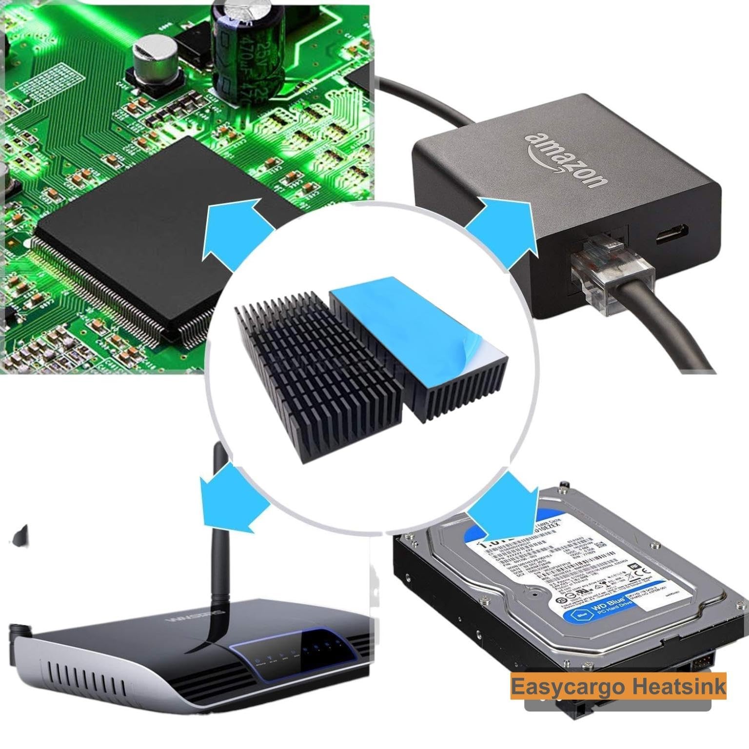 2 PCS 100x40x20mm Aluminum Heatsink Kit with 3M 8810 Thermal Adhesive Tape