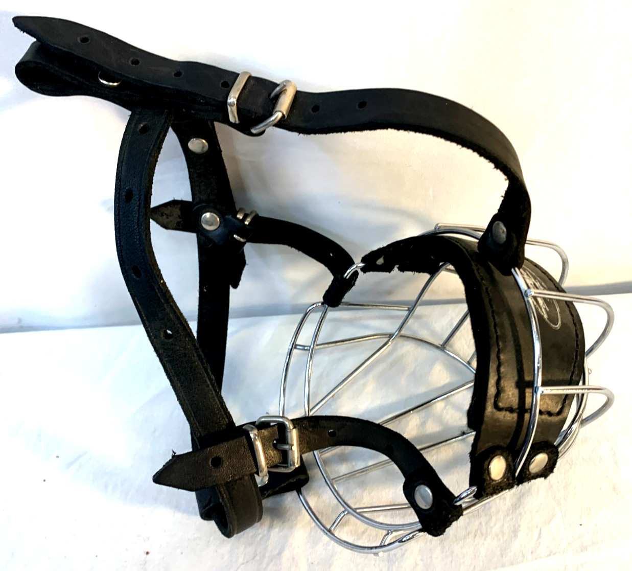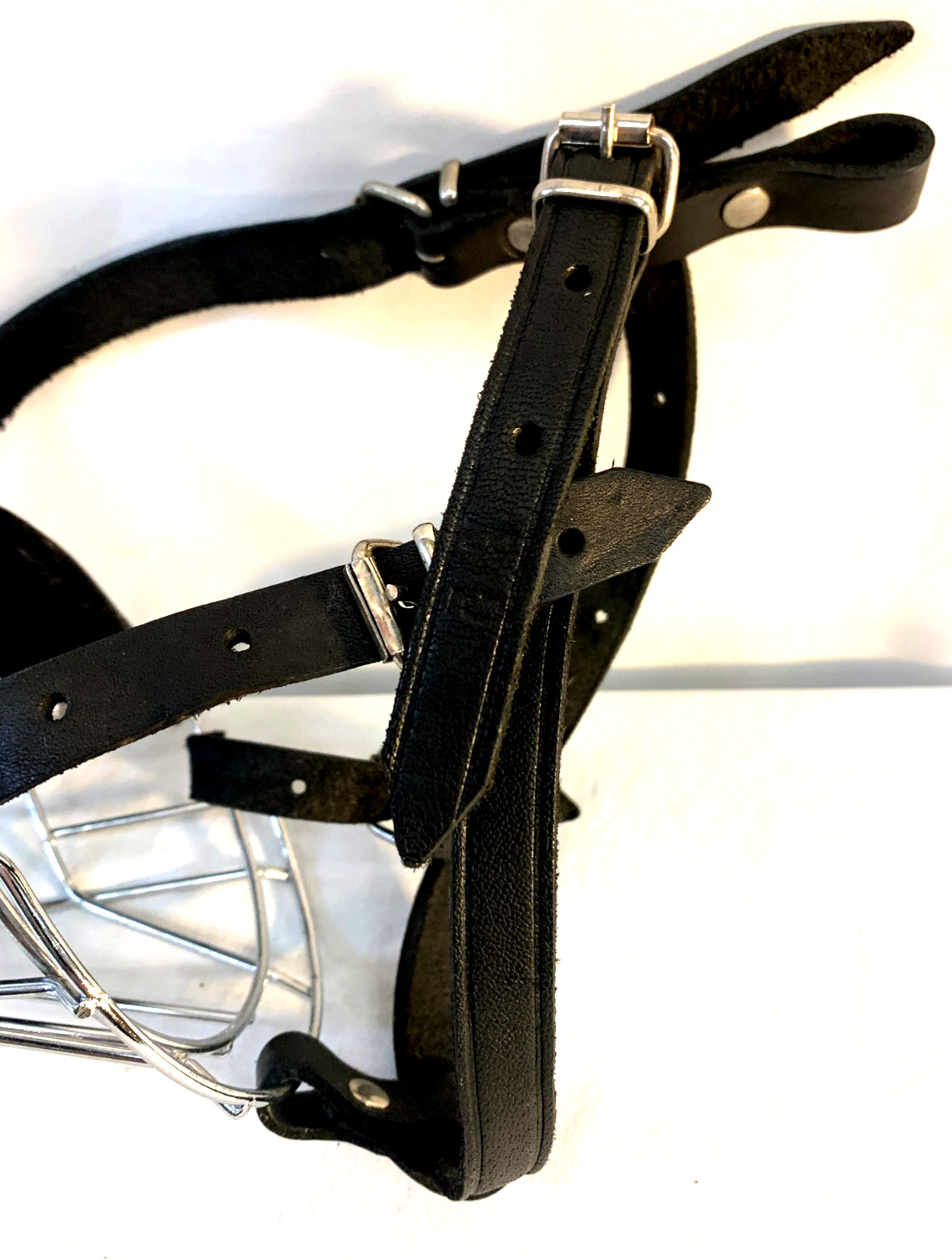 Dog Muzzle Leather Metal Wire Basket Adjustable for Pitbull Bulldog Breathable