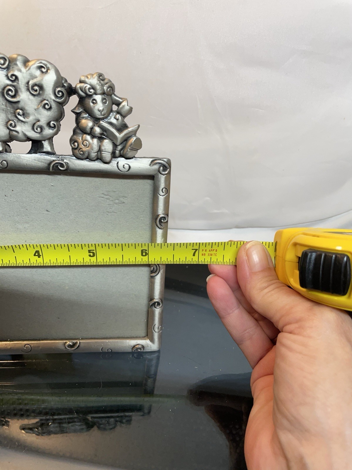как выглядит Pewter Nursery Baby Children Picture Photo Frame Metal Lamb Sheep Flowers 6x4 фото