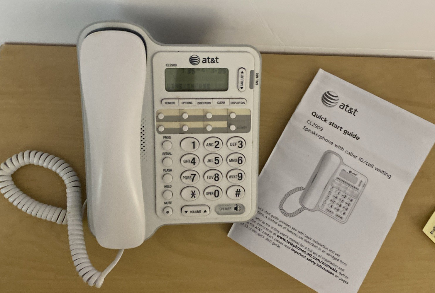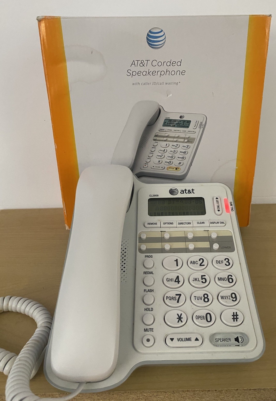 AT T CL2909 Corded Phone with Speakerphone and Caller ID/Call Waiting, White