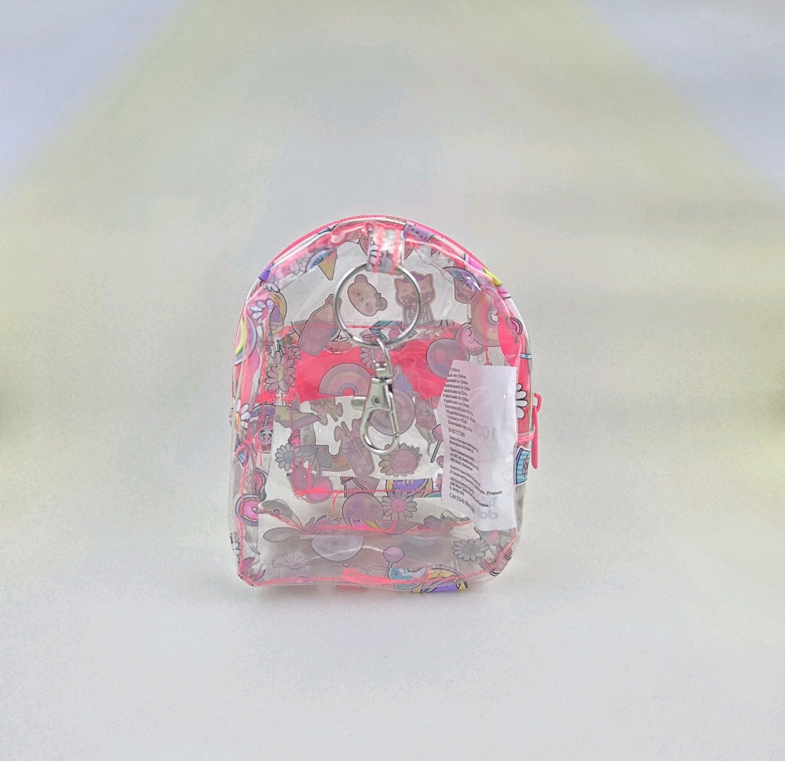 Claire s Mini Clear Backpack Bag Keychain w/ Clip Pink Rainbow Donut Gumball Toy
