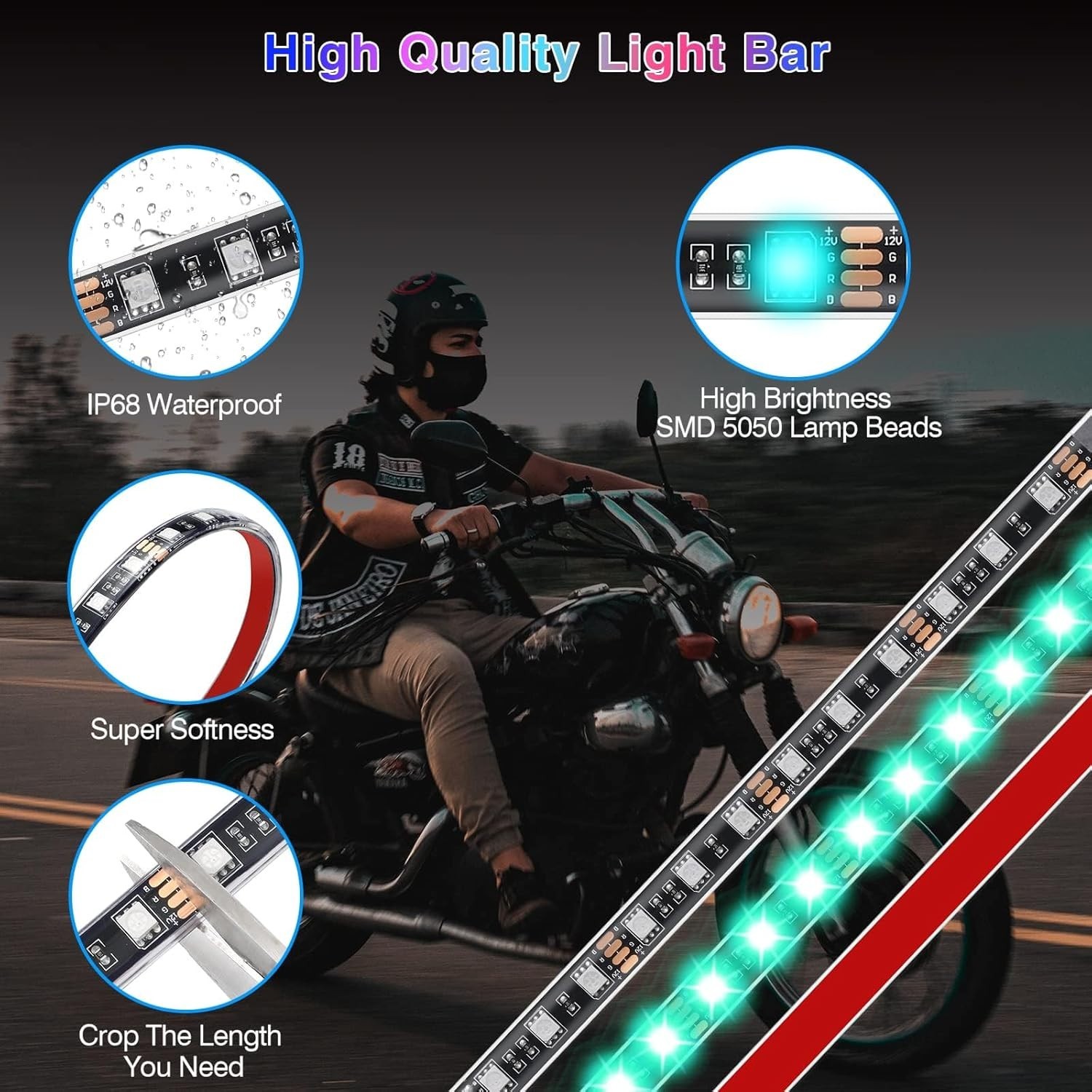 8 Piece RGB Motorcycle LED Underglow Kit with Brake Turn Signal, APP Control ...