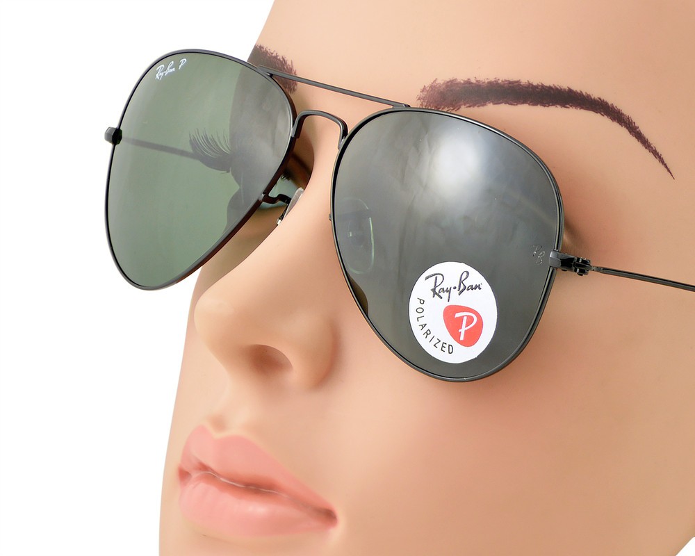 Ray-Ban Sunglasses RB3025 Aviator Classic Black Frame Polarize Green Lens 58mm