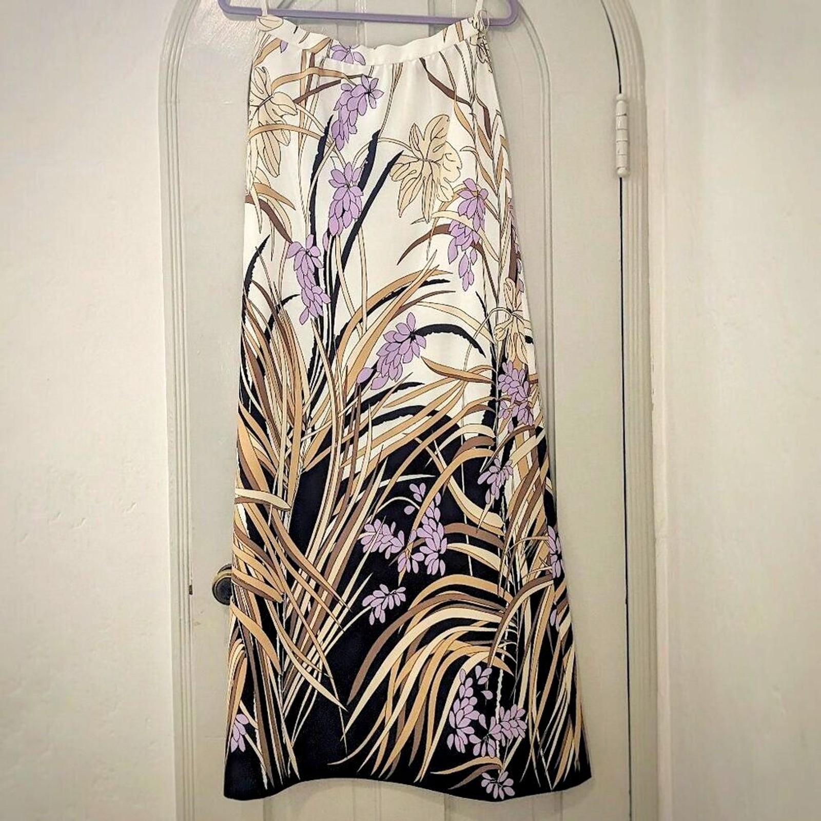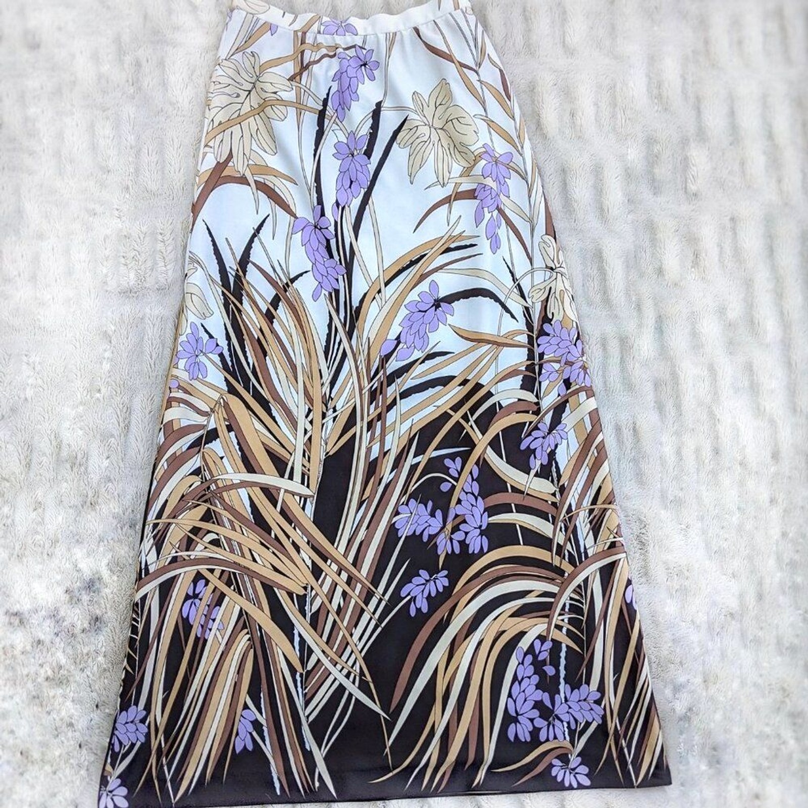 как выглядит RARE VINTAGE 70s Classic Floral Polyester A-Line Maxi Skirt, Fully Lined, Sz. 6 фото